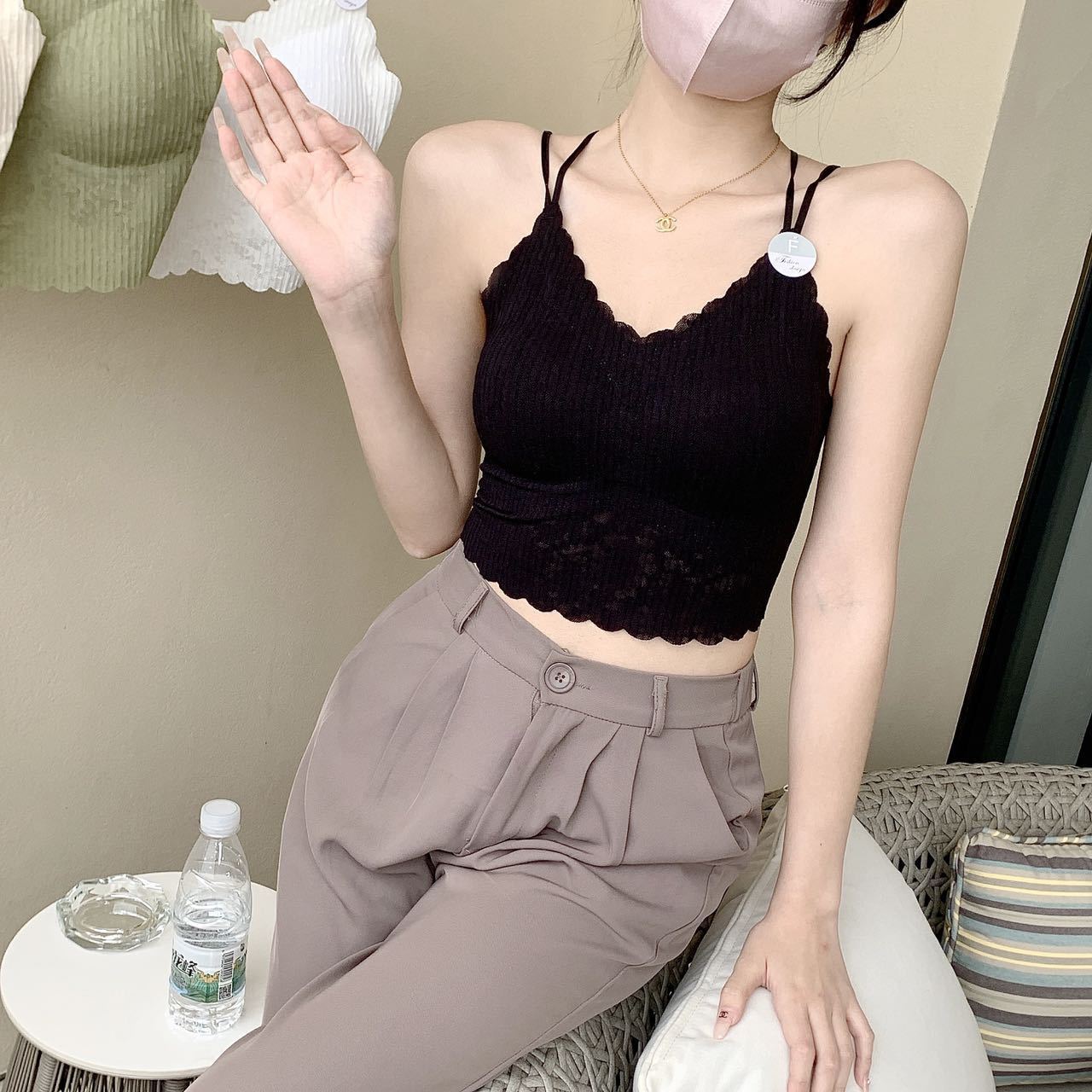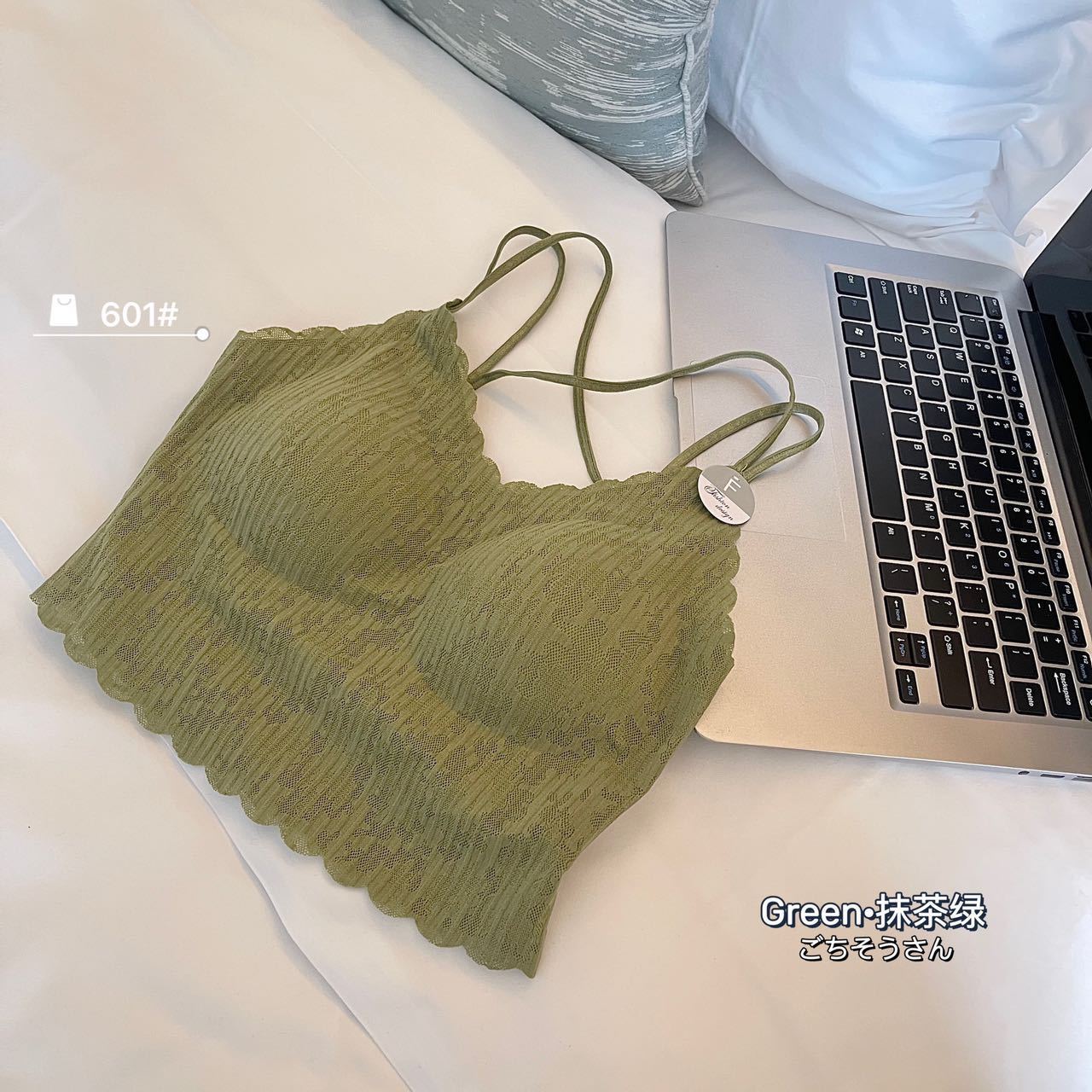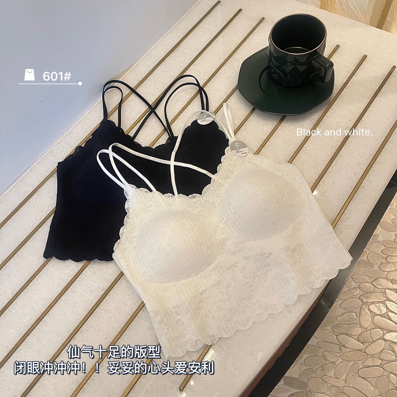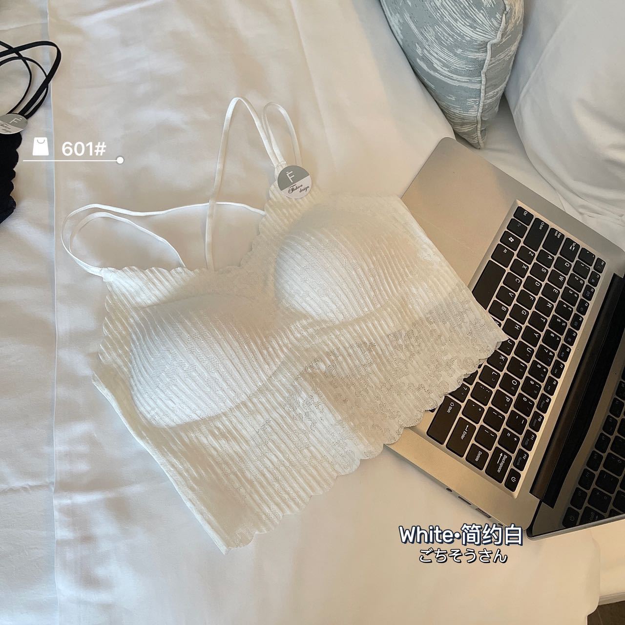 Verão Wheat Ear Lace Beautiful Back Small Sling Interno e Externo Wear One-piece Fixed Cup Seamless Vest Base Underwear para Mulheres