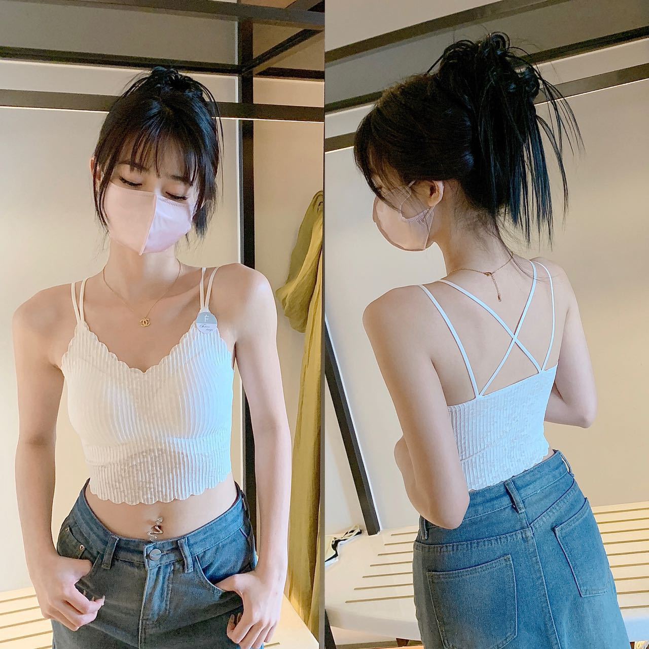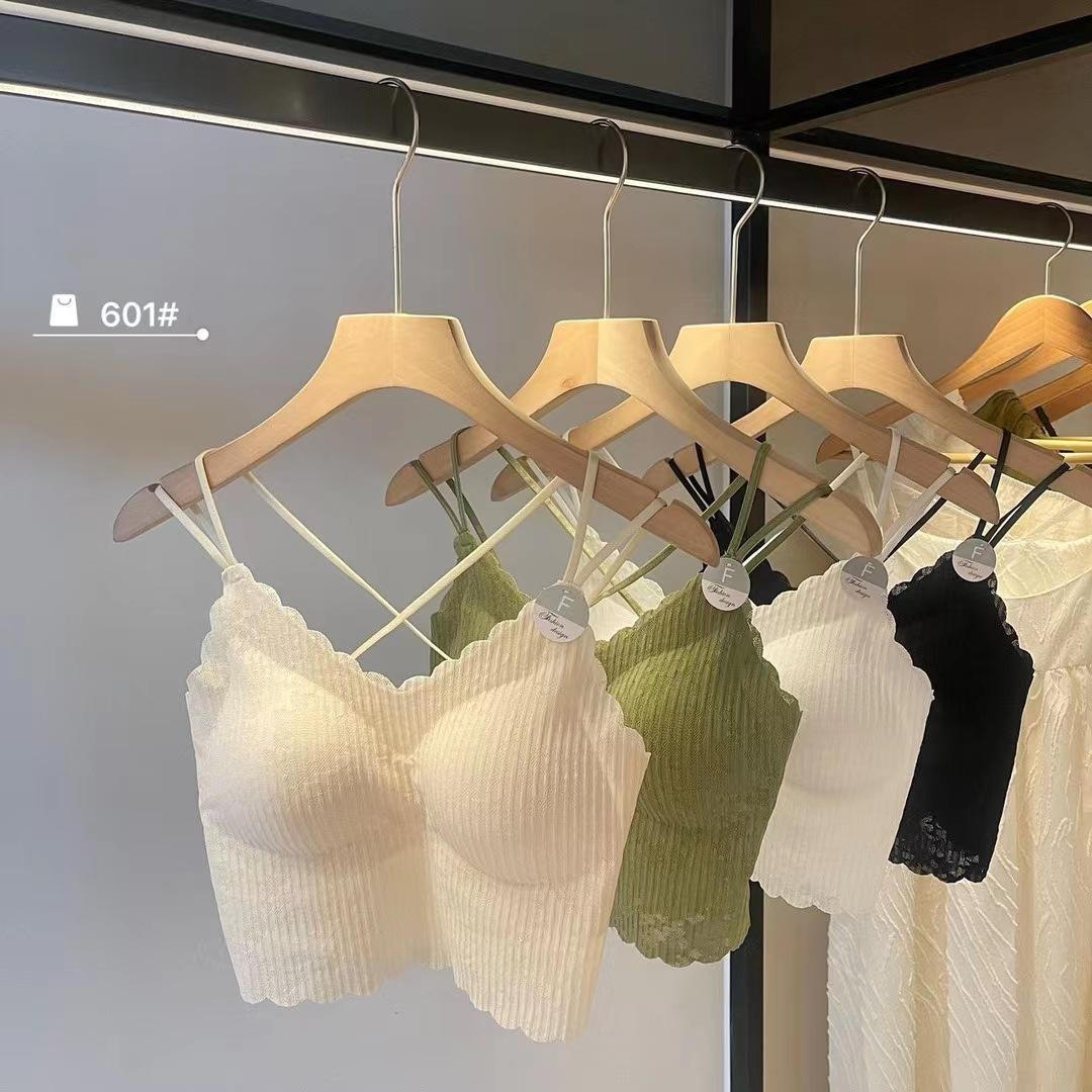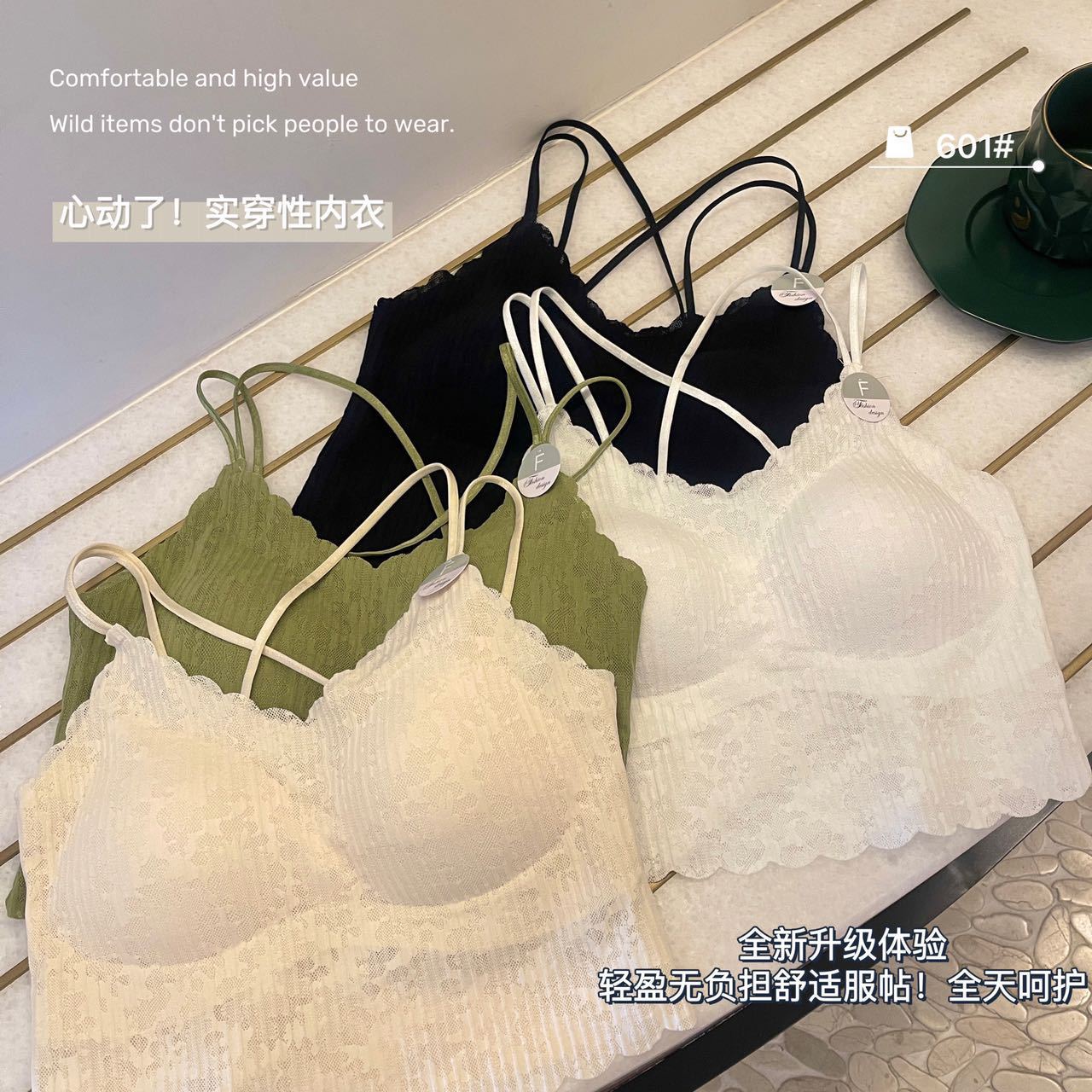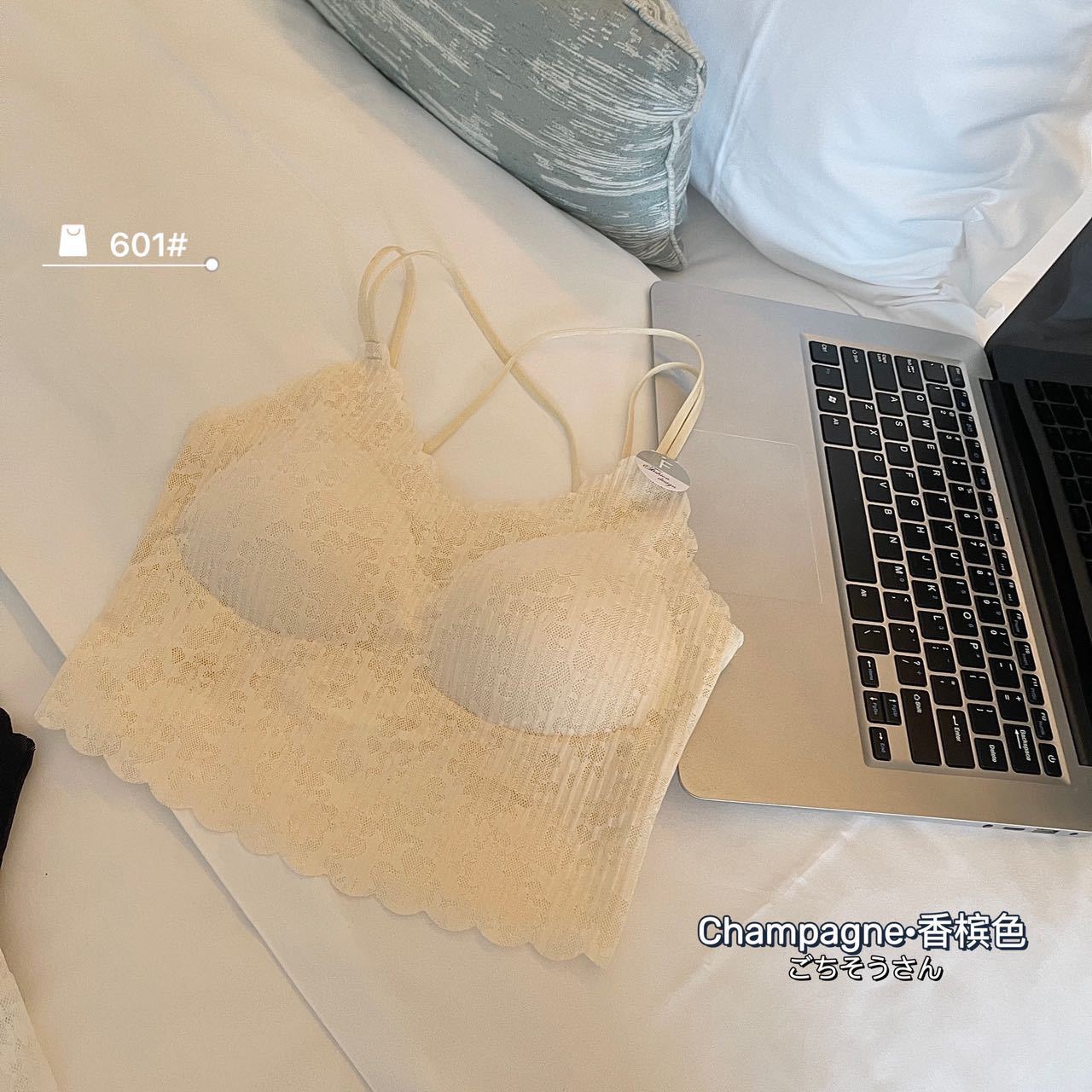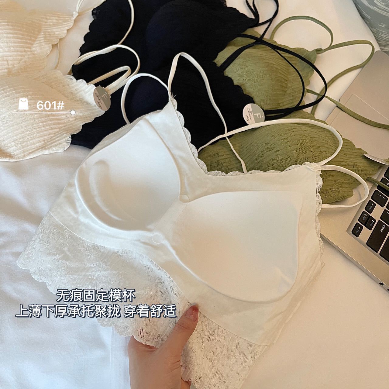 Verão Wheat Ear Lace Beautiful Back Small Sling Interno e Externo Wear One-piece Fixed Cup Seamless Vest Base Underwear para Mulheres