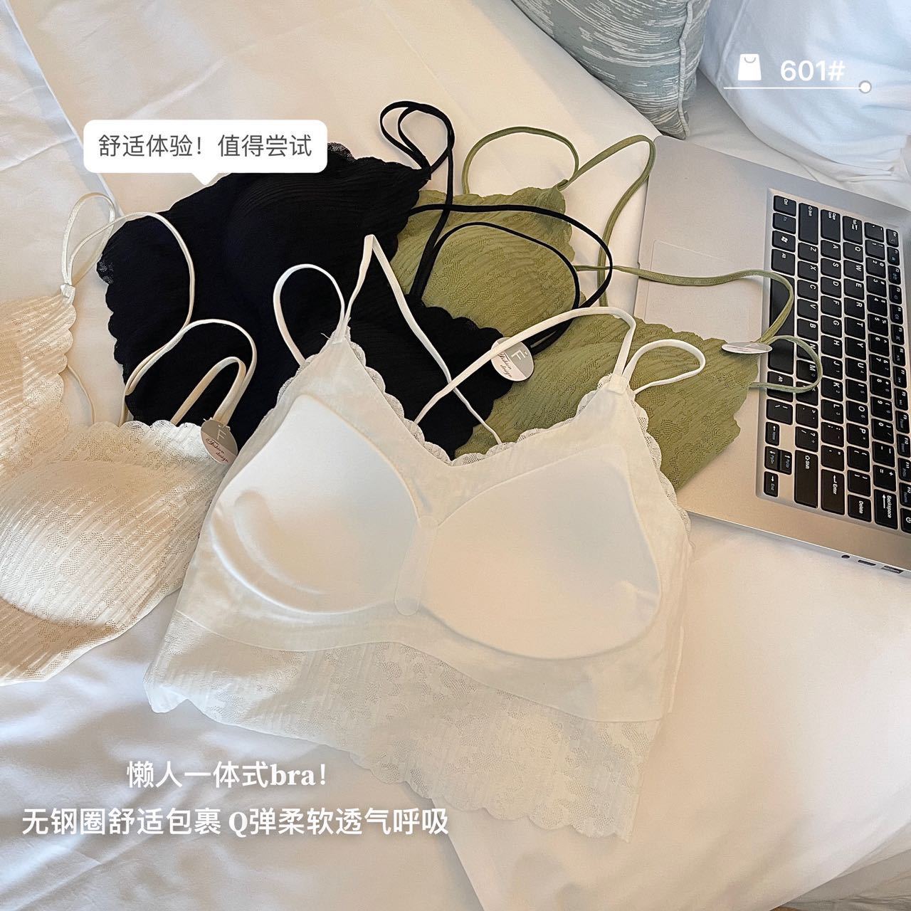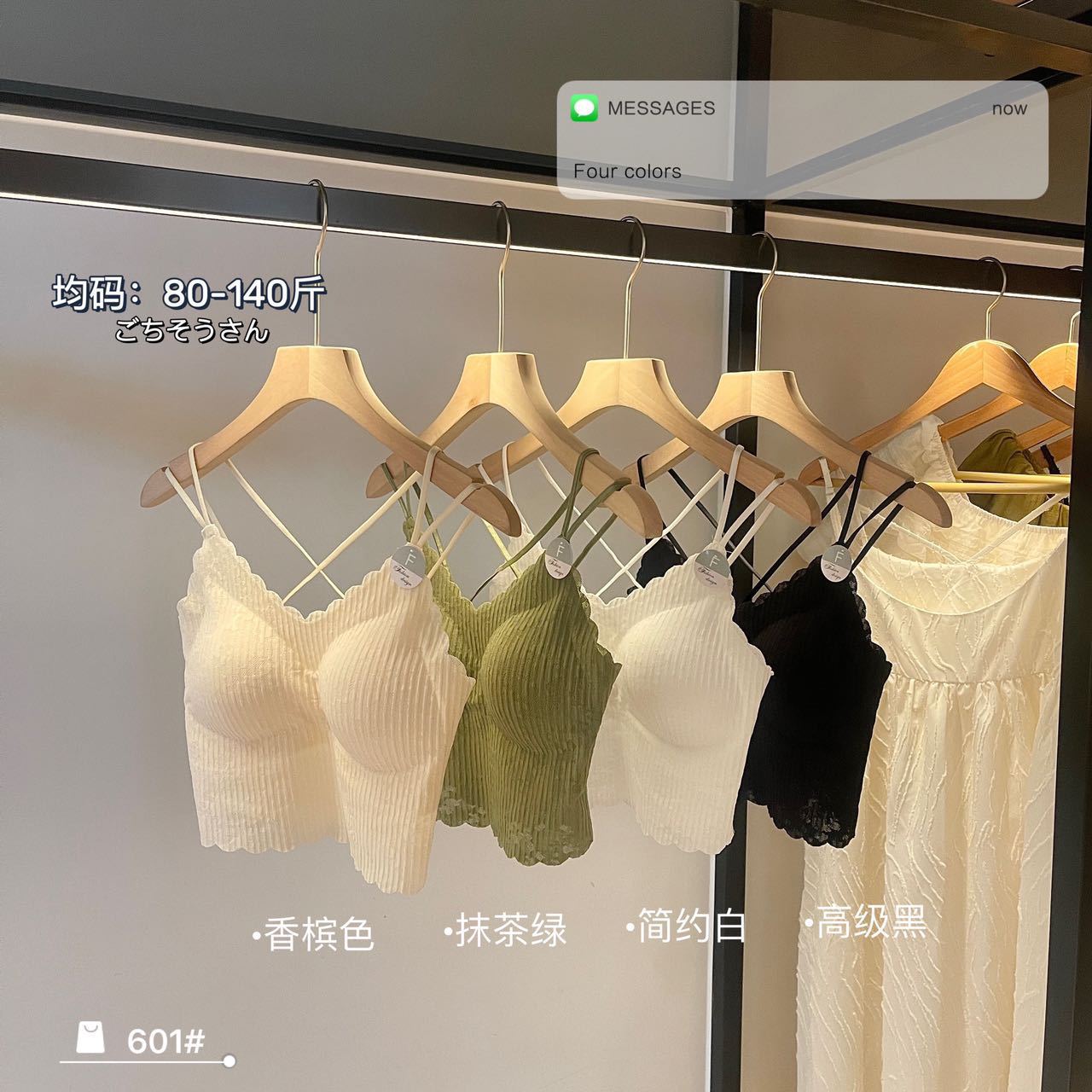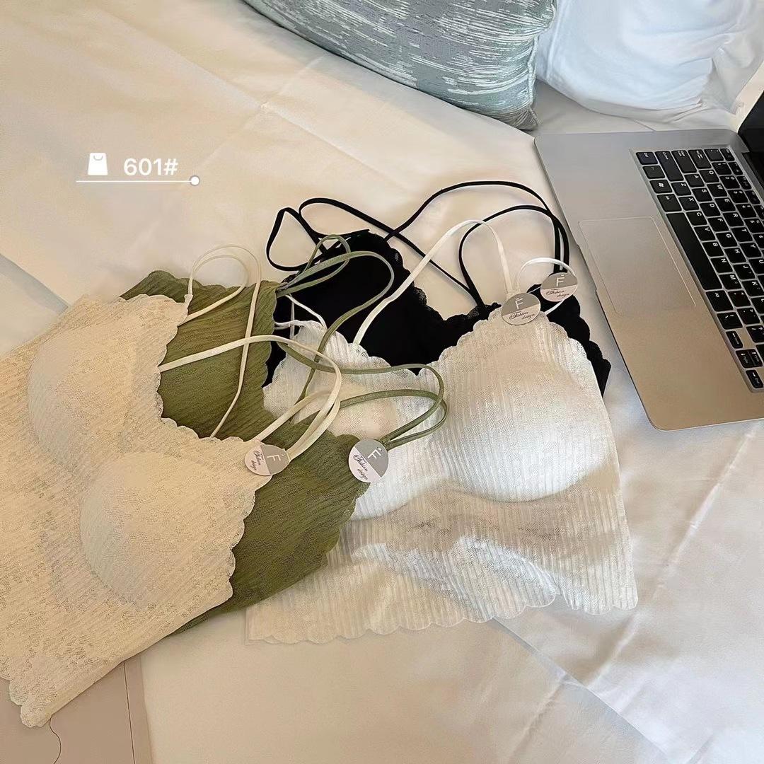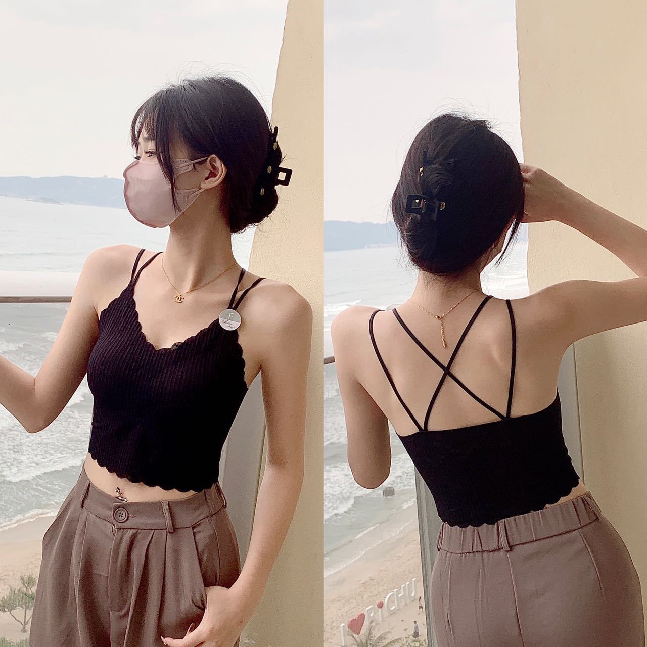 Verão Wheat Ear Lace Beautiful Back Small Sling Interno e Externo Wear One-piece Fixed Cup Seamless Vest Base Underwear para Mulheres