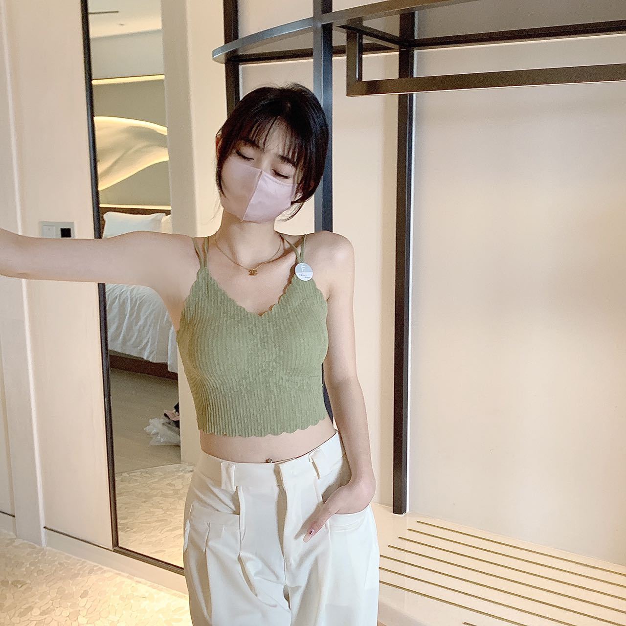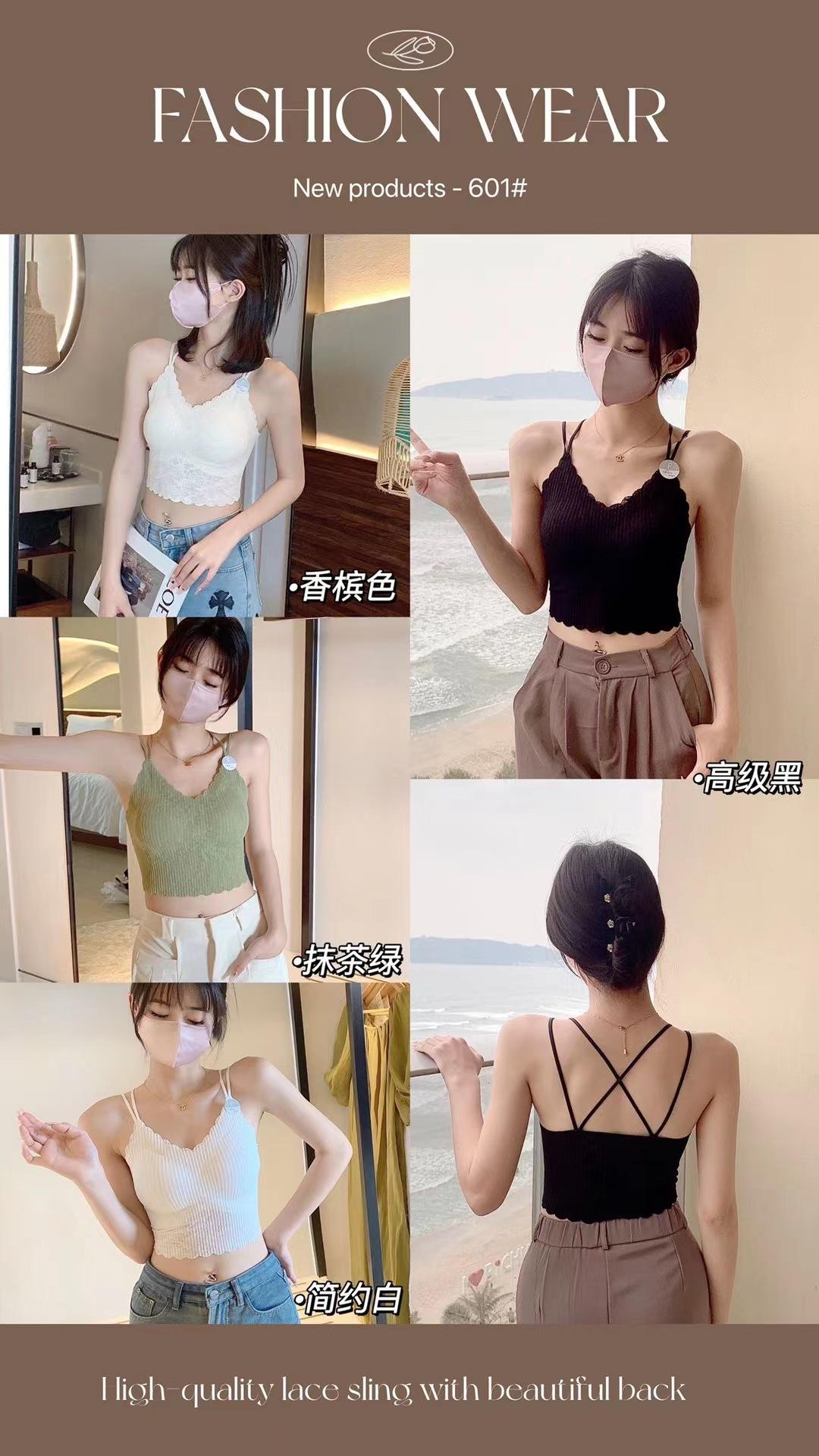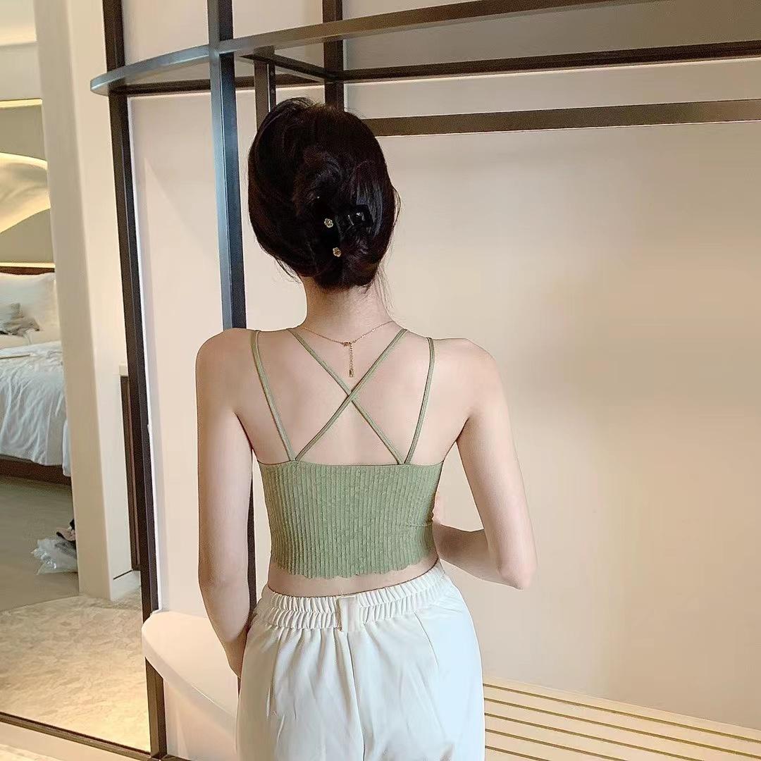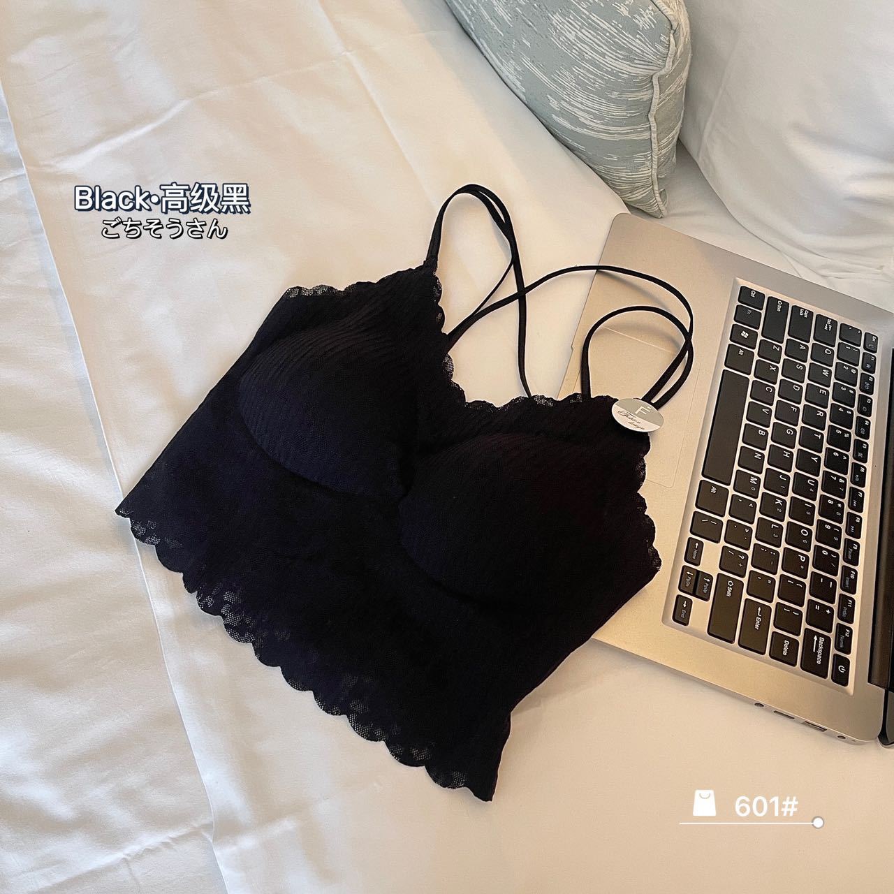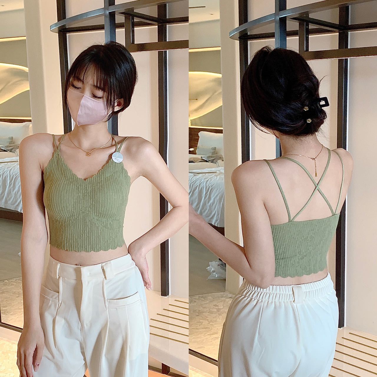 Verão Wheat Ear Lace Beautiful Back Small Sling Interno e Externo Wear One-piece Fixed Cup Seamless Vest Base Underwear para Mulheres