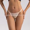 Roupa íntima feminina plus size sexy de renda em formato de T, europeia e americana, transparente, de malha, com cinto fino e sem tanga