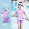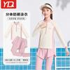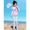 Traje de Banho Infantil Feminino Dividido Calças de Manga Comprida com Capuz Combinação de Cores Pequeno, Médio e Grande Proteção Solar Infantil Decote Redondo Conservador Traje de Banho para Águas Termais