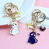 Bonito Anjo Asas Gato Chaveiro Star Lua Metal Car Key Ring Corrente Pingente Bag Acessórios