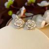 Brincos de Pérola Simples e Compactos para Mulheres, Estilo Coreano e Japonês, Nicho, Elegantes, Chiques com um Toque de Luxo, Design de Camélia