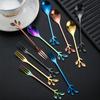 Talheres de Aço Inoxidável Colher e Garfo Folha Criativa Colher de Café Garfo de Fruta Garfo para Bolo da Lua Hotel Escritório Bar Transparente Colher para Mistura