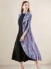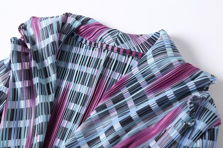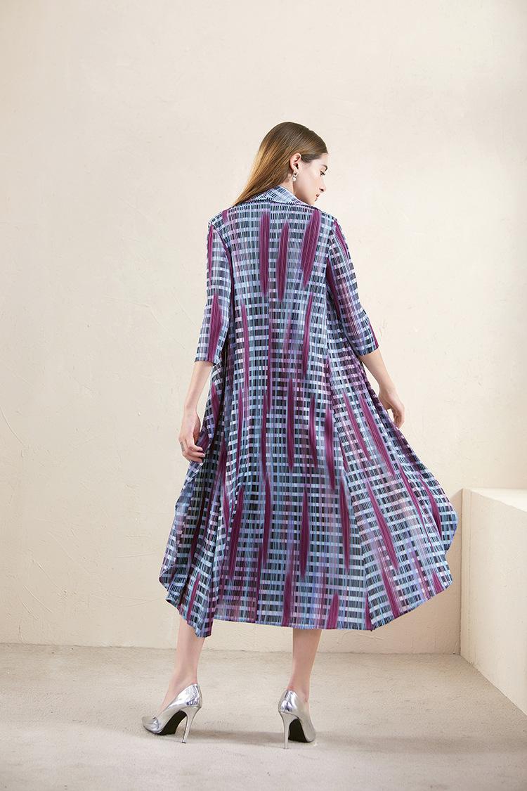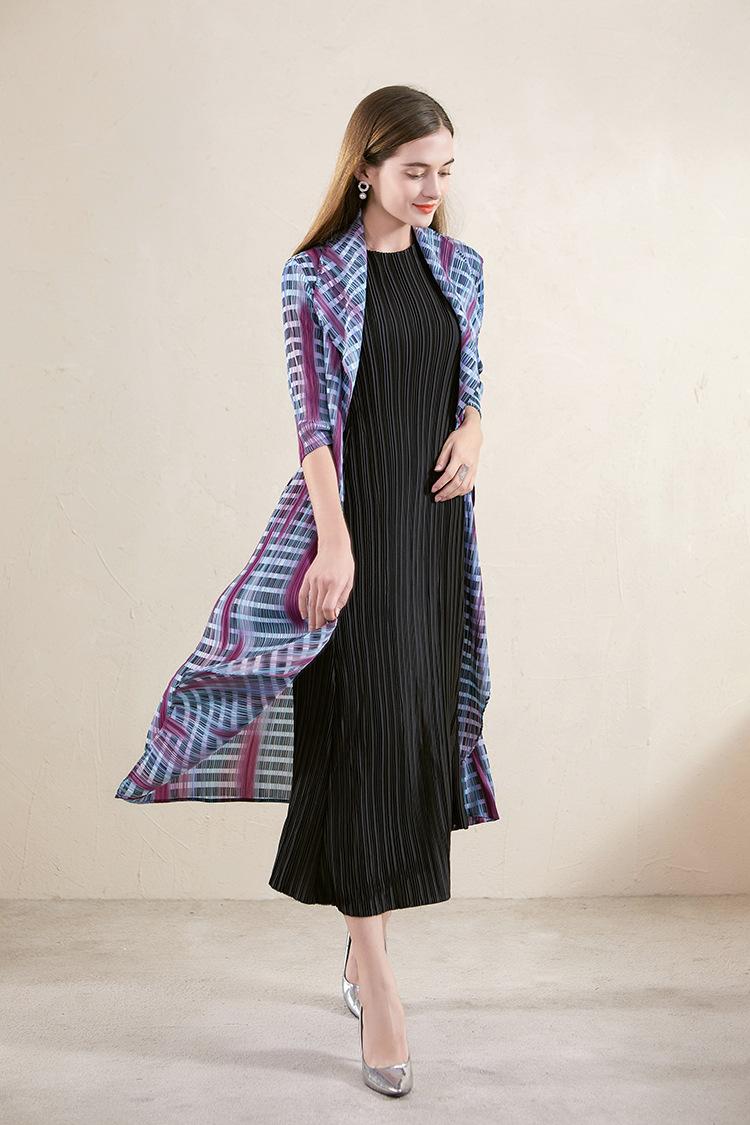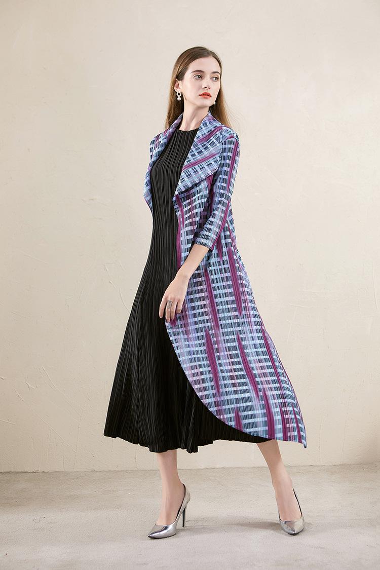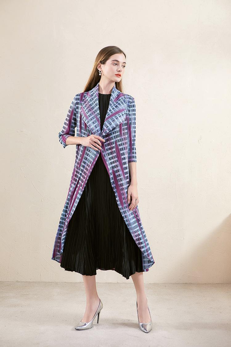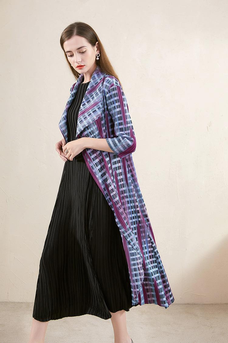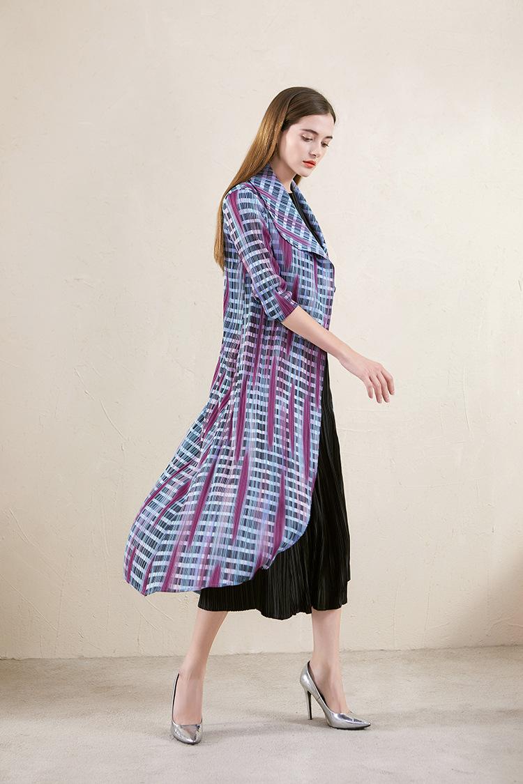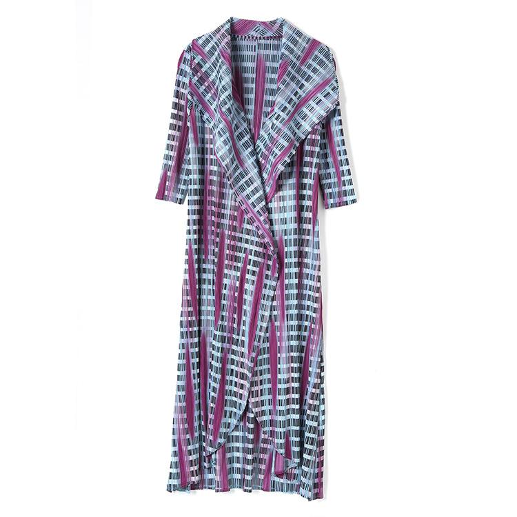 Casaco elegante Cardigan Mulheres alongar roupas de outono Mulheres Miyake Lapela Emagrecimento plissado listrado xadrez estampado Trunkcoat
