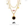 Europa e Estados Unidos nova personalidade simples moda Joker titânio aço banhado a ouro natural olho de tigre pedra pingente colar jóias mulheres atacado