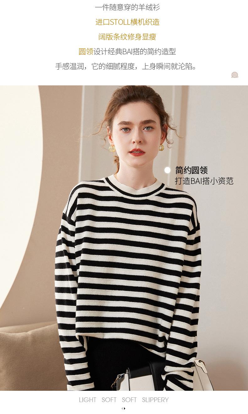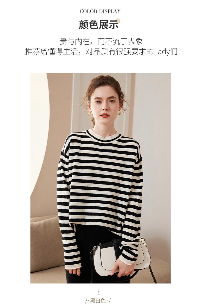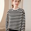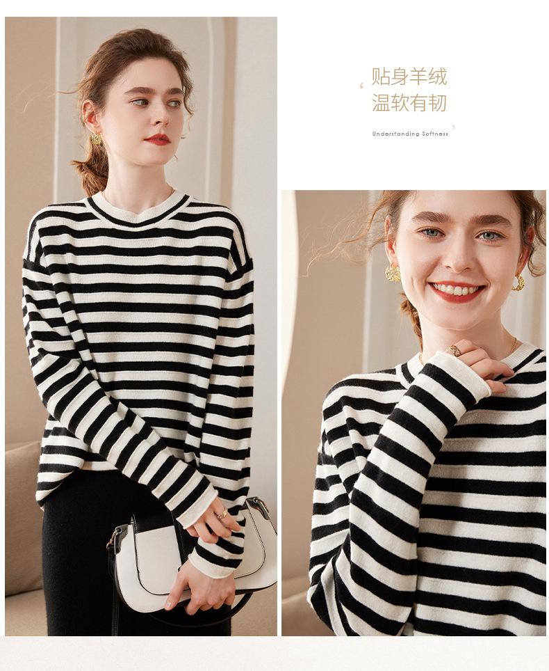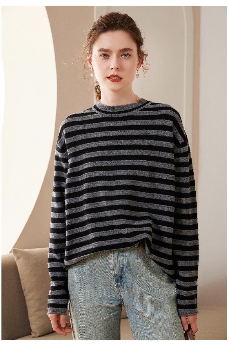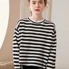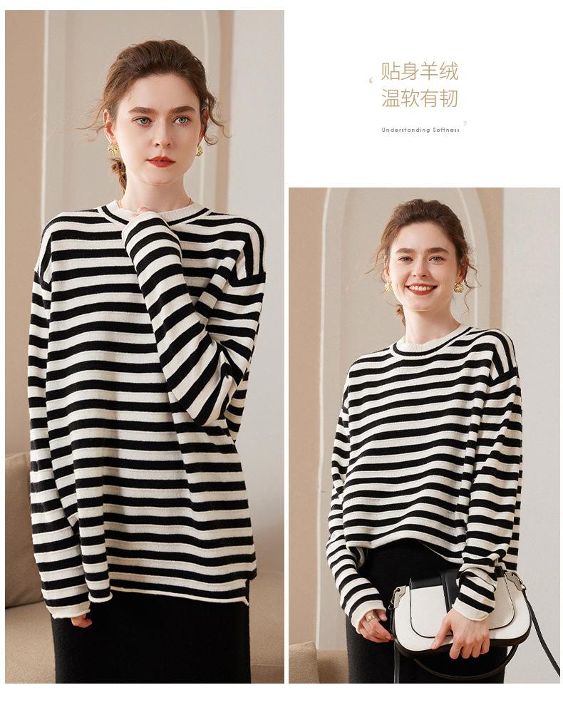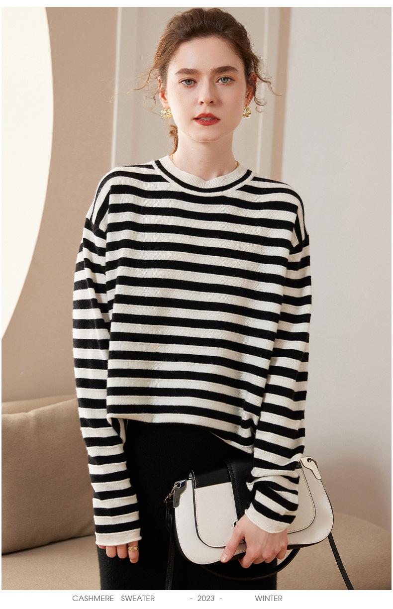 2023 outono e inverno suéter de caxemira largo mulheres listrado preto e branco de manga comprida solto estilo ocidental top camisola de lã mulheres