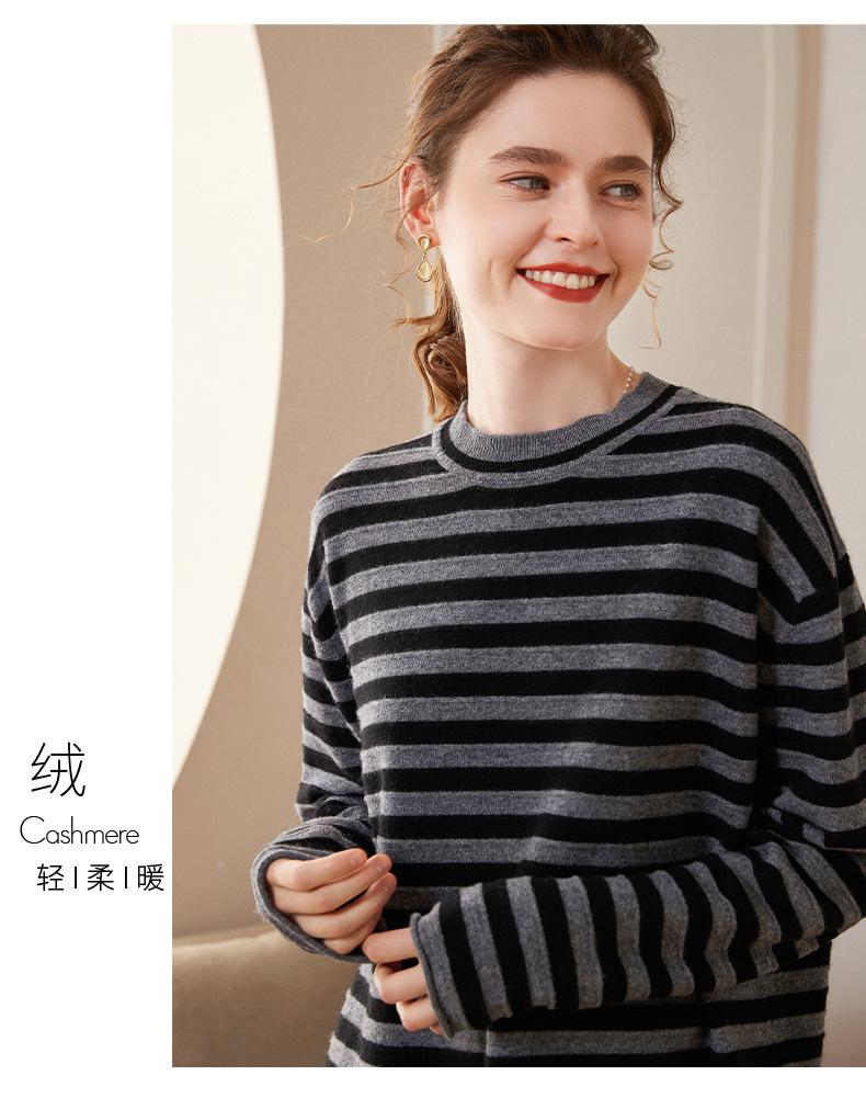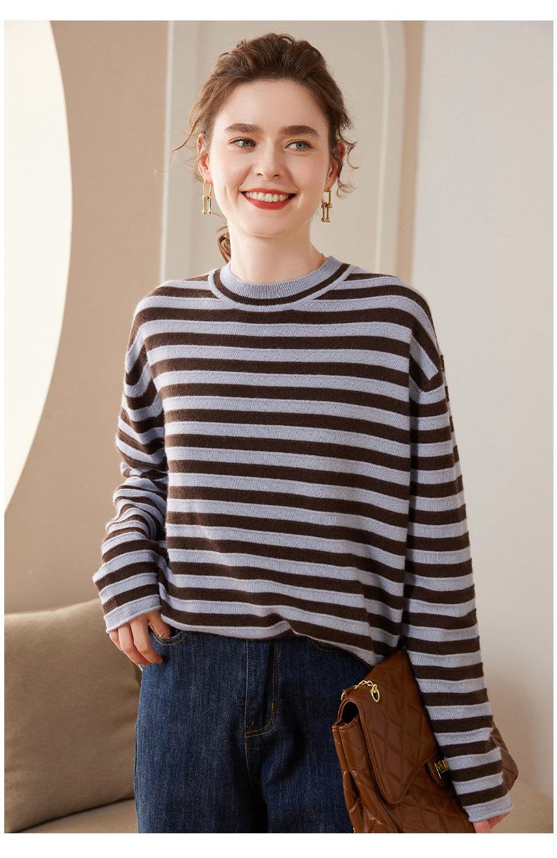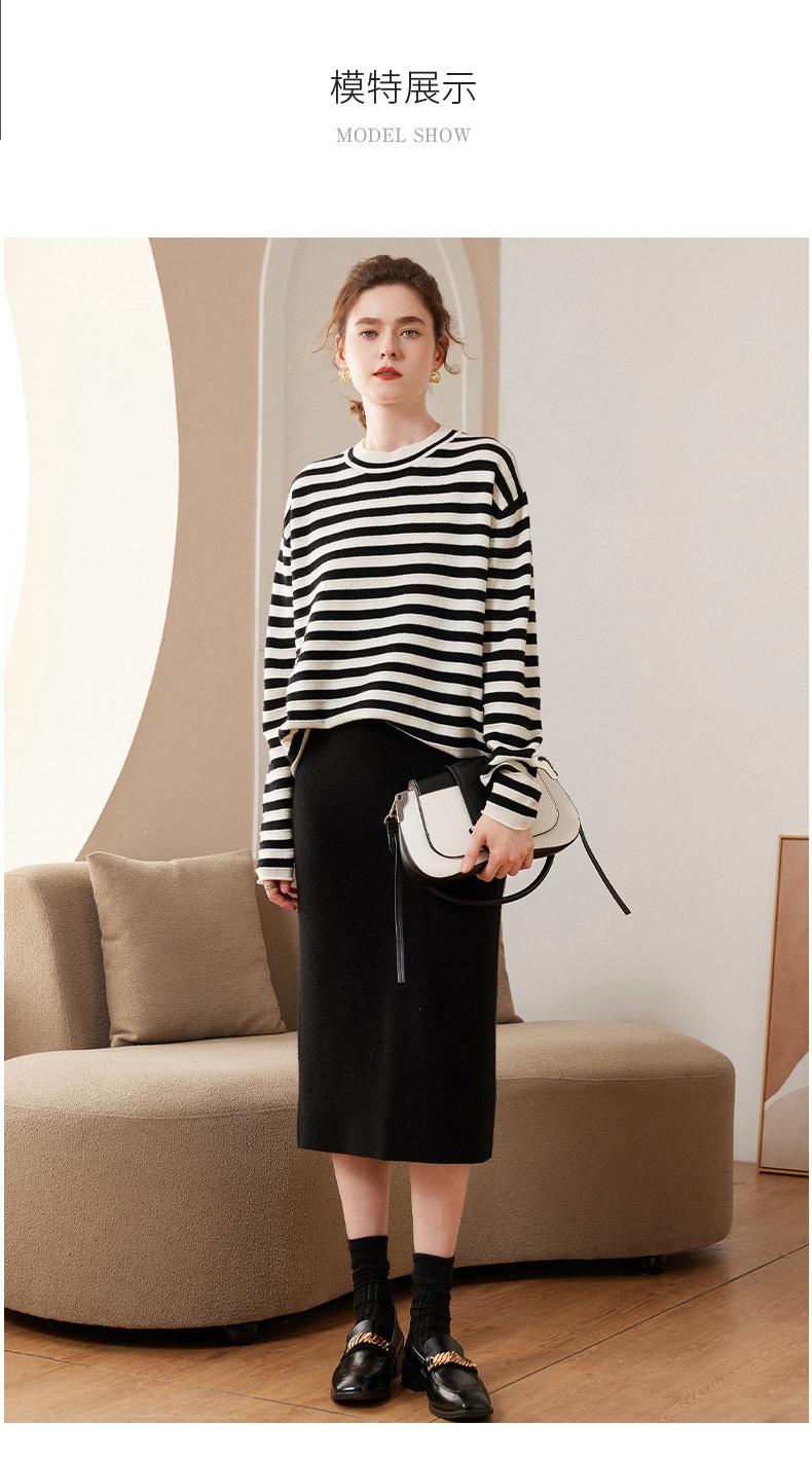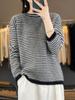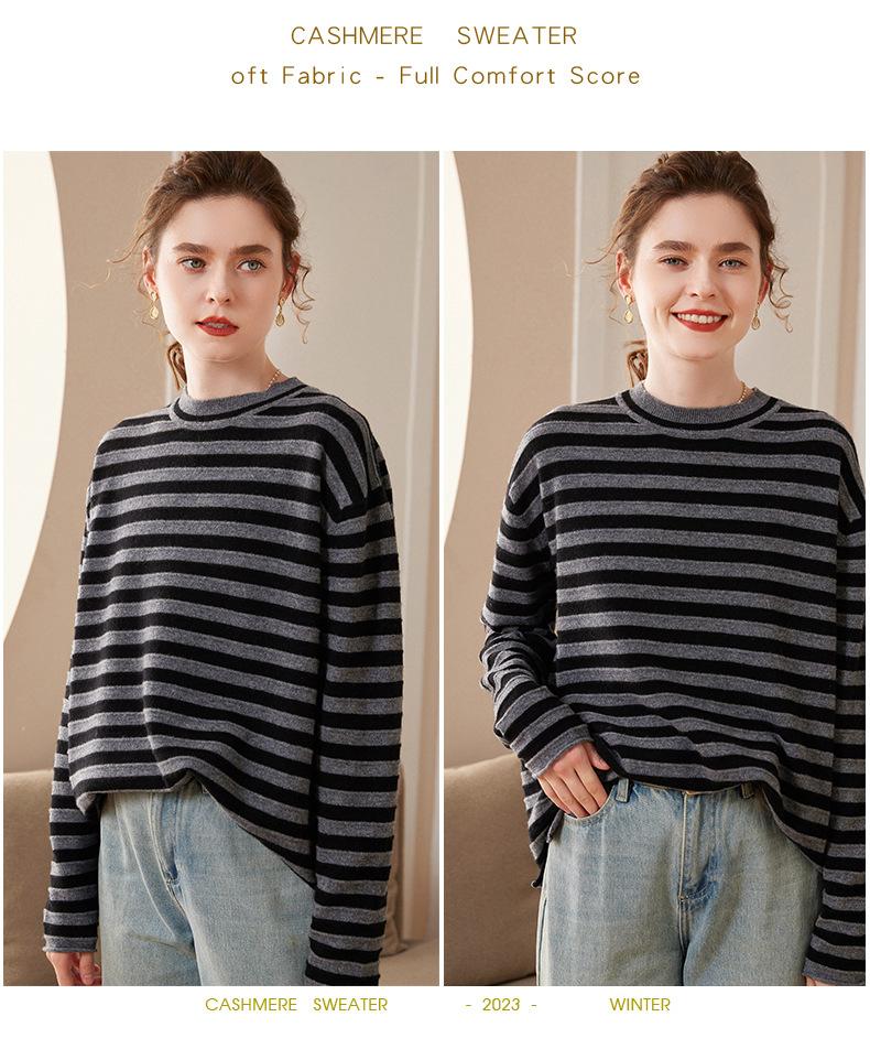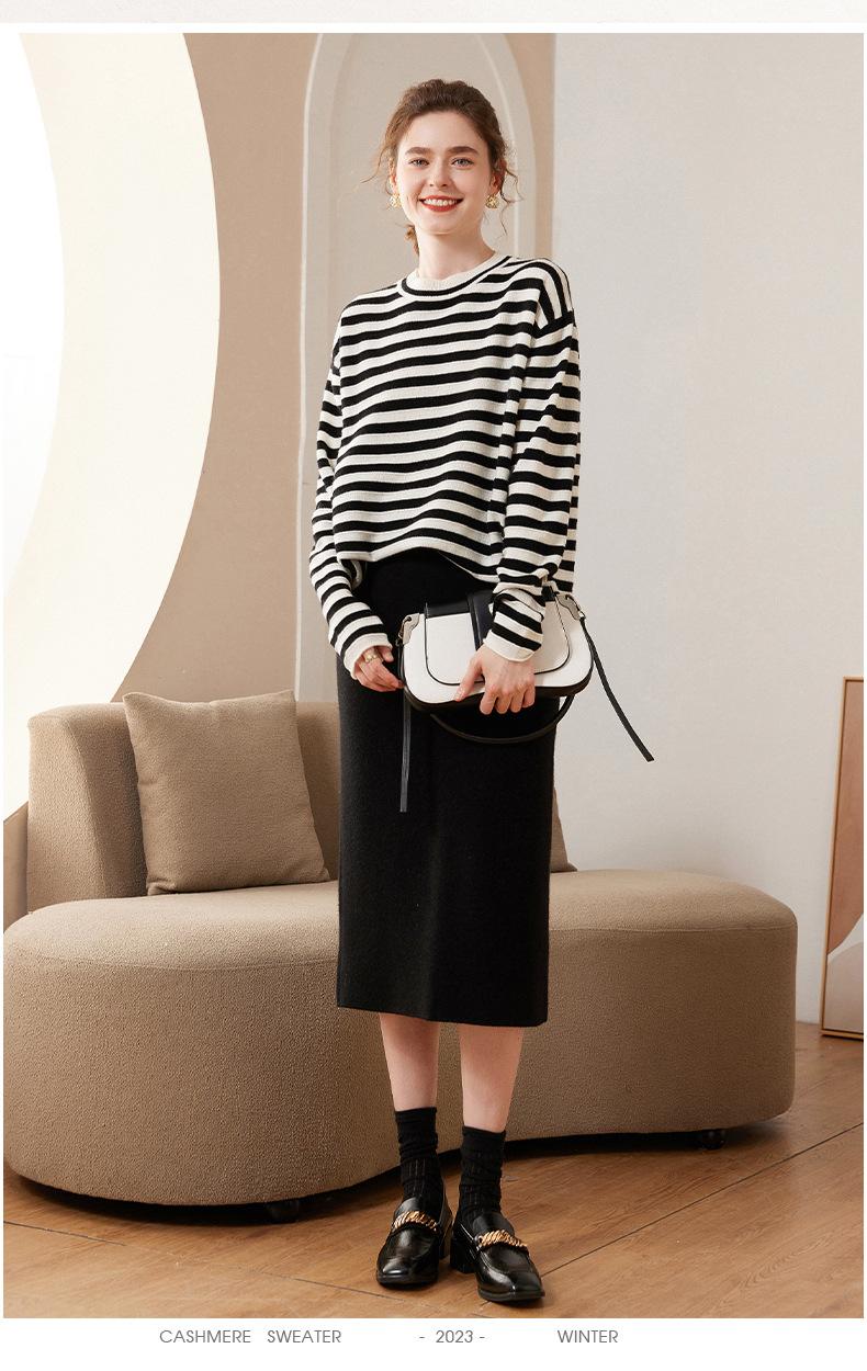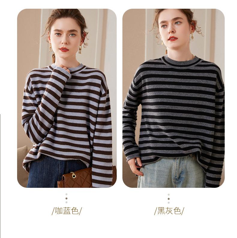 2023 outono e inverno suéter de caxemira largo mulheres listrado preto e branco de manga comprida solto estilo ocidental top camisola de lã mulheres