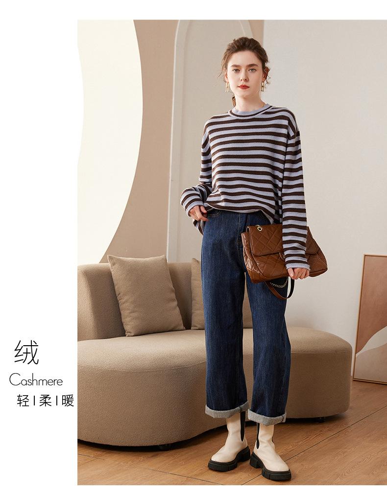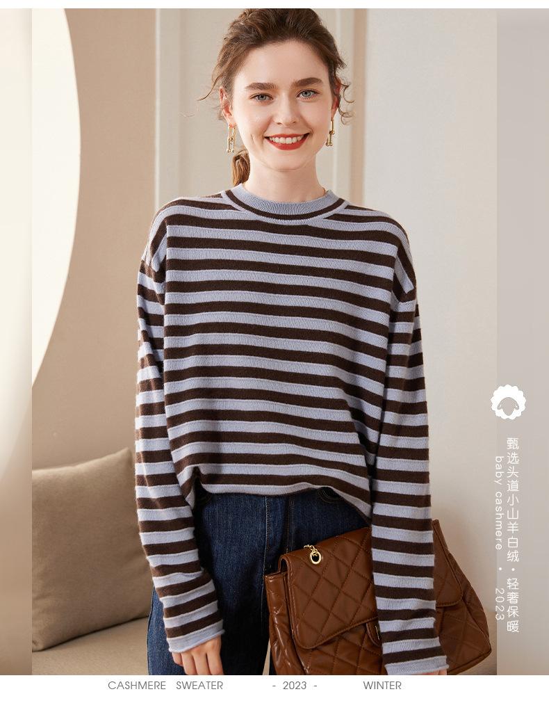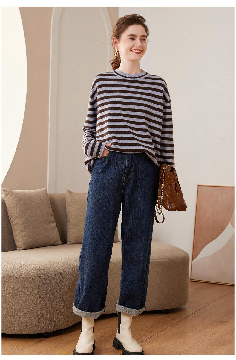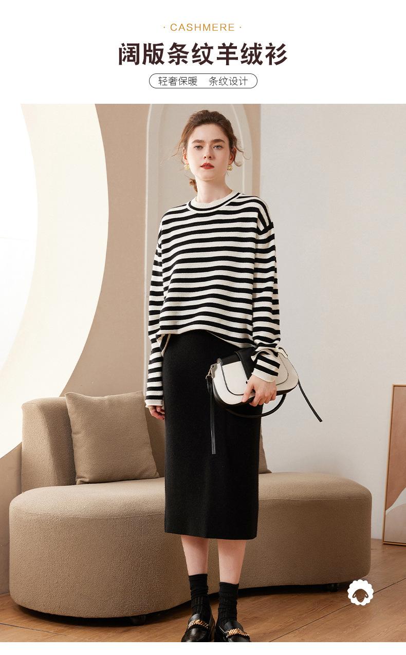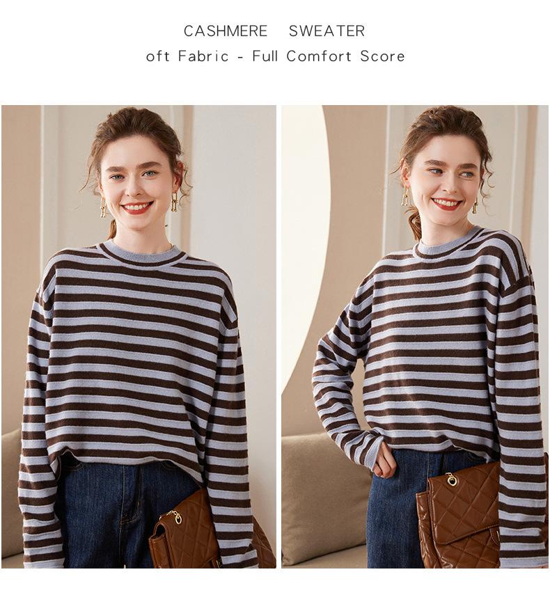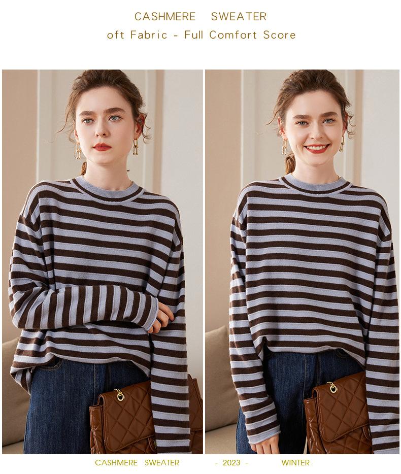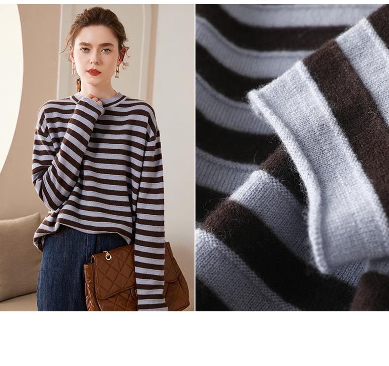 2023 outono e inverno suéter de caxemira largo mulheres listrado preto e branco de manga comprida solto estilo ocidental top camisola de lã mulheres
