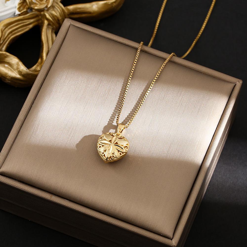 Colar de Aço Titânio Feminino Trevo de Quatro Folhas Coração Cobre Banhado a Ouro Colar de Ouro Real 18K Colar Feminino com Pingente Corrente para Clavícula