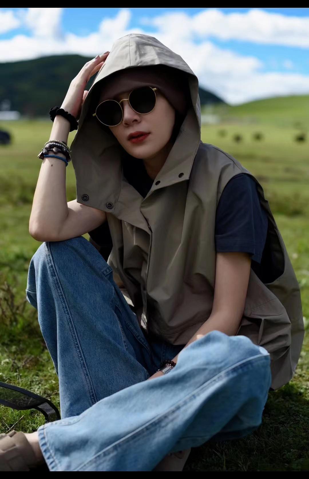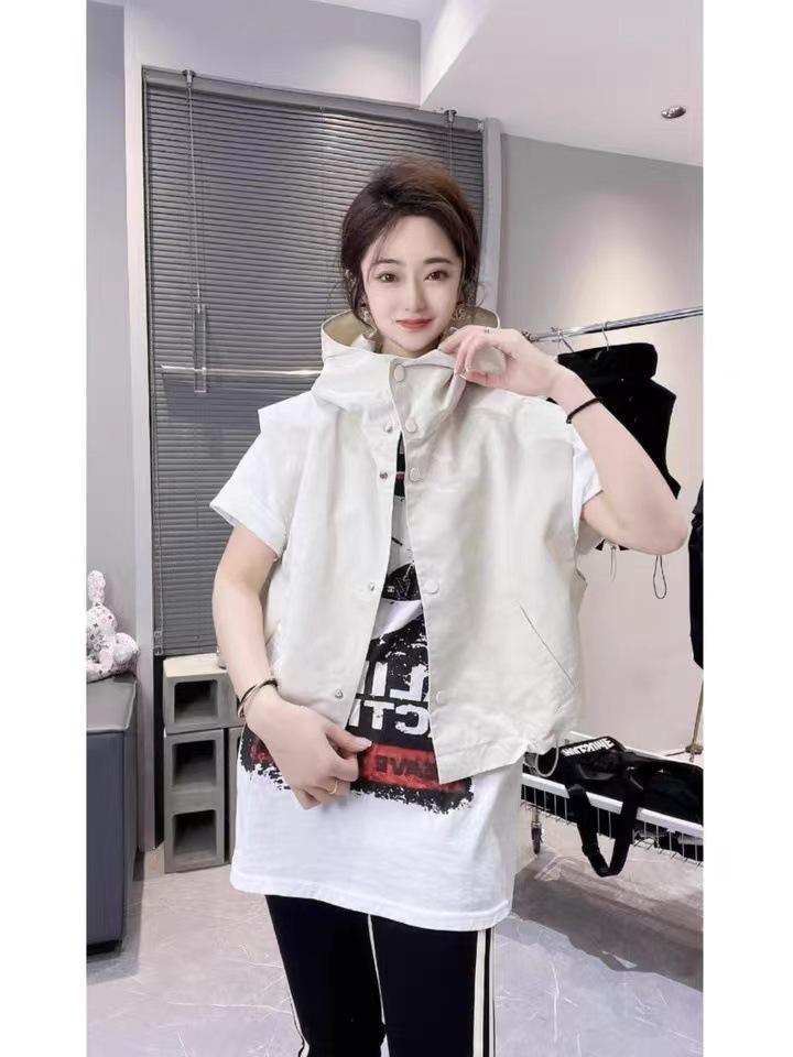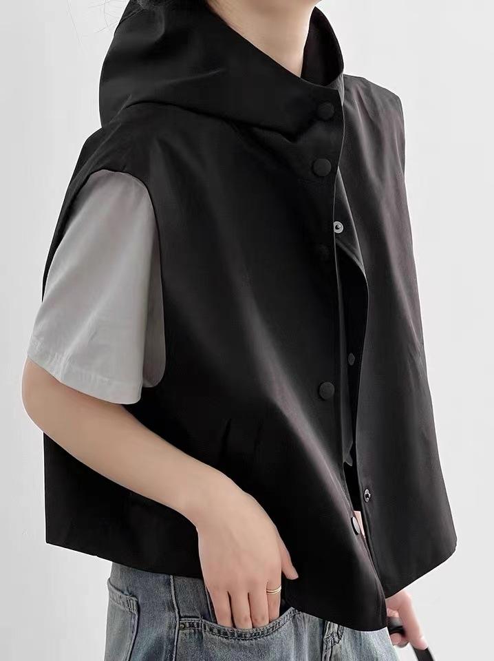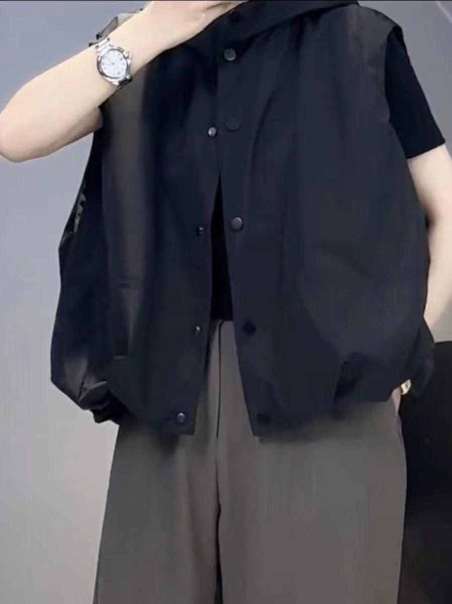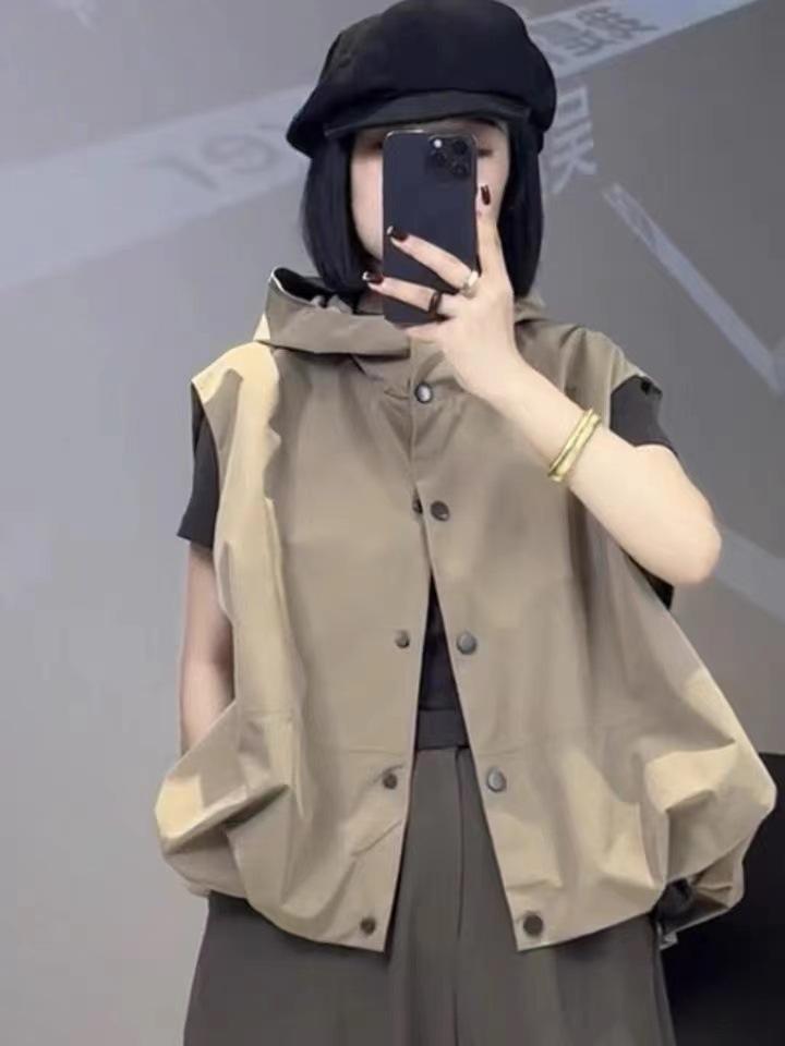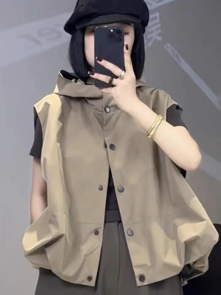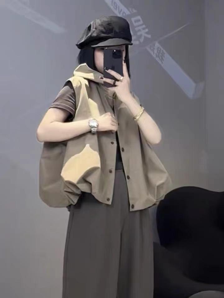 Estação Europeia Casual Estilo Ocidental All-match Sem Mangas Abóbora Colete Com Capuz Design Feminino Solto Cordão Colete Top Outono