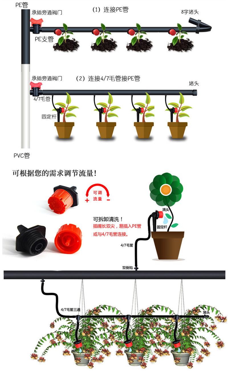 Gotejador de oito furos para jardim Chapeuzinho Vermelho, estufa para pomar, vaso de plantas, gotejador de fluxo ajustável, acessórios de irrigação para economia de água