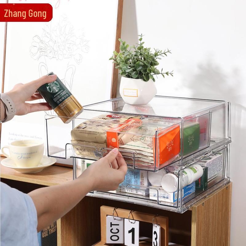 Zhang Gongxin caixa de armazenamento tipo gaveta, dormitório estudantil, artefato de armazenamento de papelaria, escritório, caixa organizadora transparente