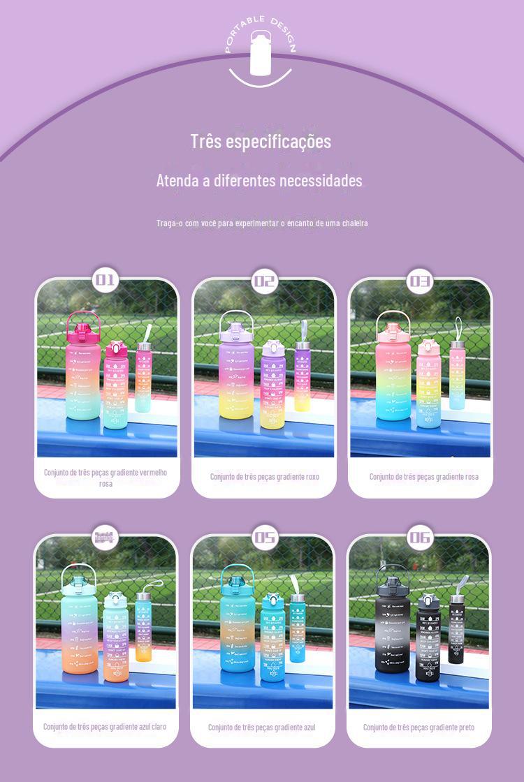 Zhang Gong Grande Capacidade Palha Water Cup 3-Piece Set Summer Fitness Frosted Kettle ins Estilo Explosões Set Cup Portable
