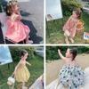 Vestido de verão para meninas, bebê, estiloso, infantil, personalizado, moderno, marca, estilo coreano, chiffon, floral, princesa, colete, saia deslizante