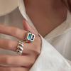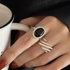 Anel oval preto de alta qualidade feminino linha simples elegante S925 prata split anel de hip-hop anel de dedo