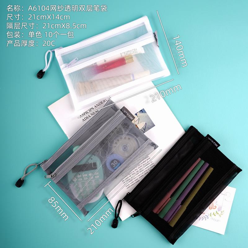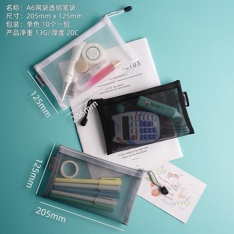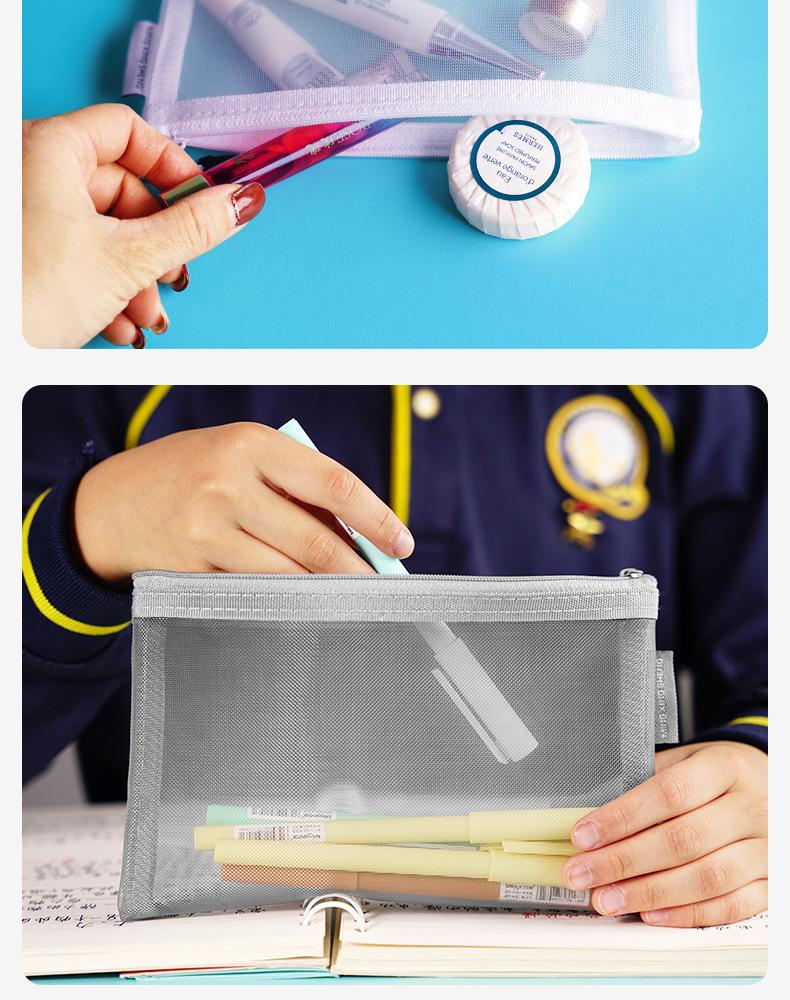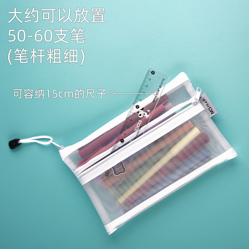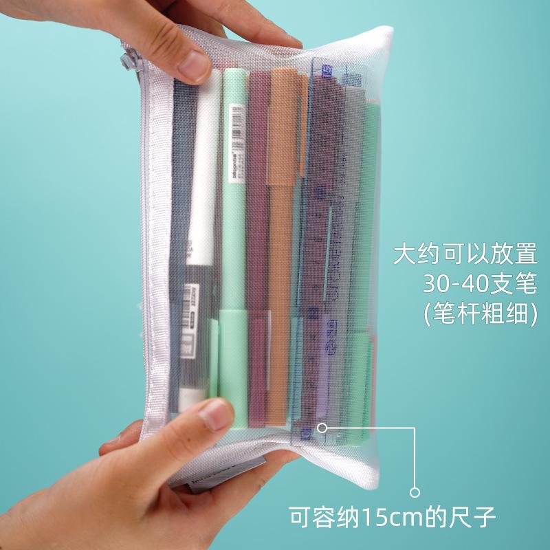 Spot atacado nylon malha papelaria saco simples transparente estojo de lápis exame estudantes de grande capacidade Girl Pencil Case