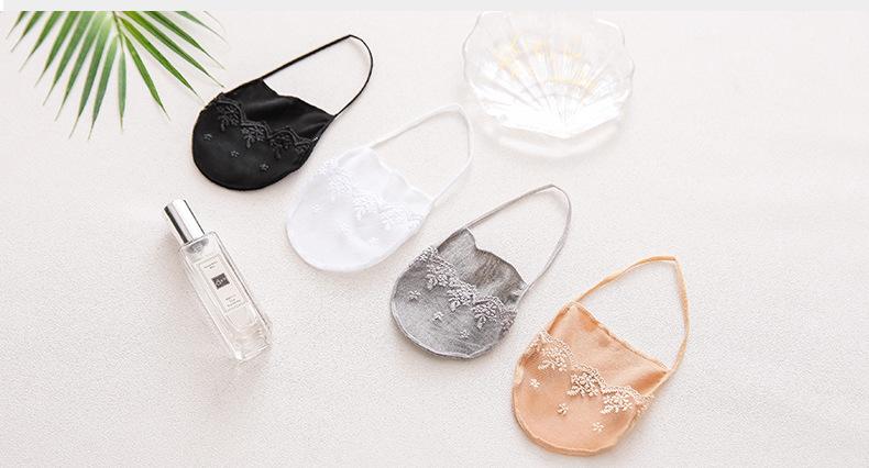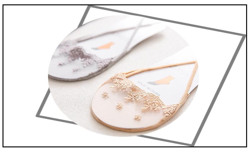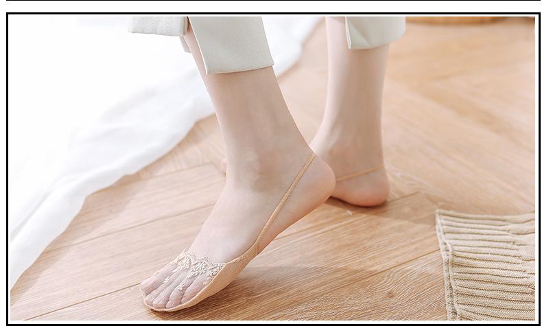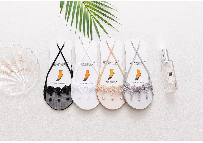 Meias de salto alto de verão, boca rasa, invisíveis, estilo barco, meia palma, tira de renda, meias femininas ocas, antiderrapantes e antiderrapantes