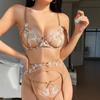 Conjunto de sutiã push-up feminino com renda ultrafina, roupa íntima bonita, transparente, confortável e respirável