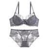 Conjunto de sutiã feminino de renda sexy roupa íntima push up sutiã fino cinza tamanho grande