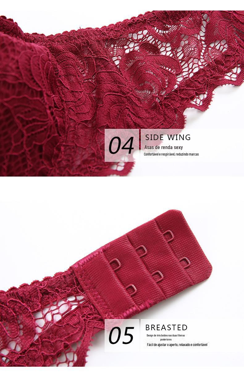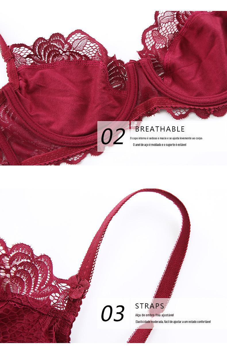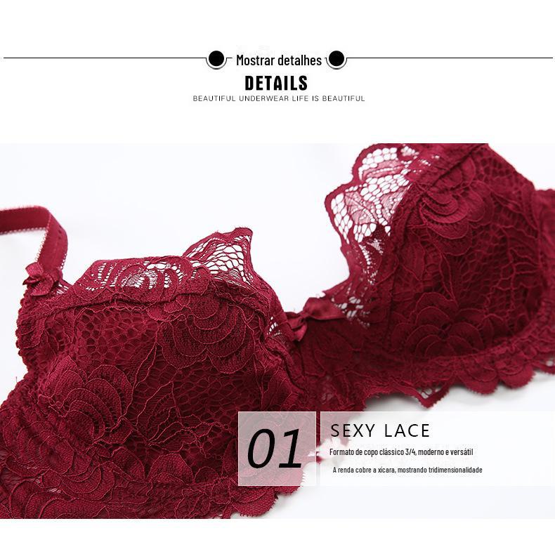 Sutiã fino, roupa íntima feminina de renda sexy, seios grandes, conjunto de sutiã pequeno, confortável e respirável