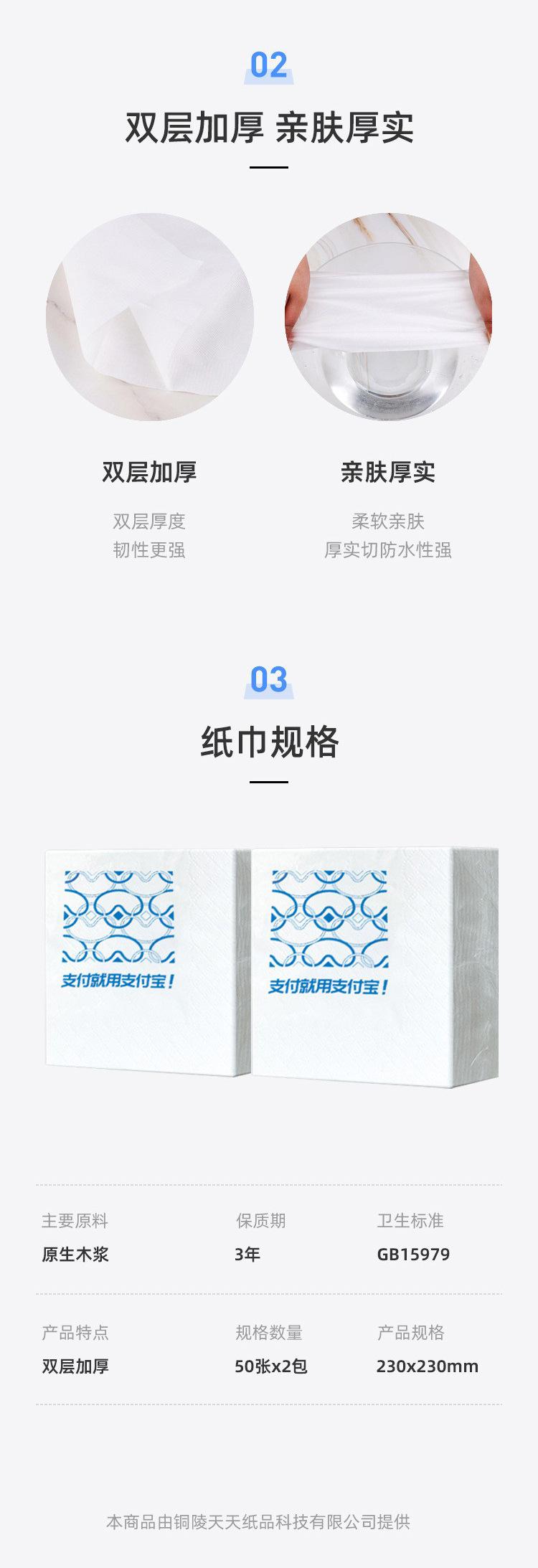 2 pacotes, Alipay, polpa de madeira nativa, guardanapo, água molhada, não quebrado, sem pedaços de papel, comercial com guardanapo 50 folhas * 2 pacotes