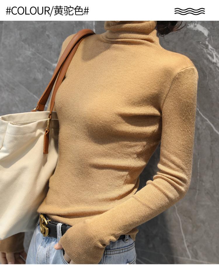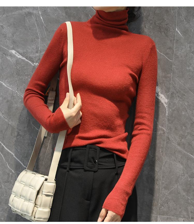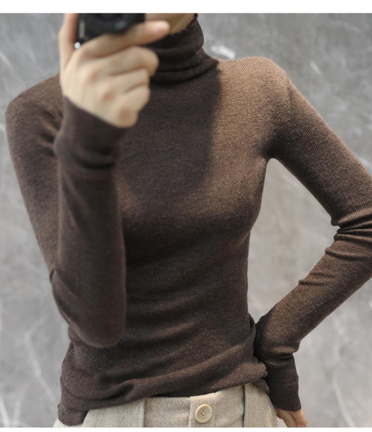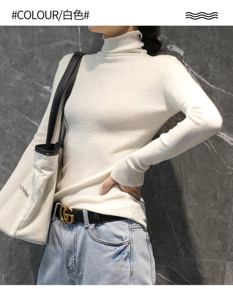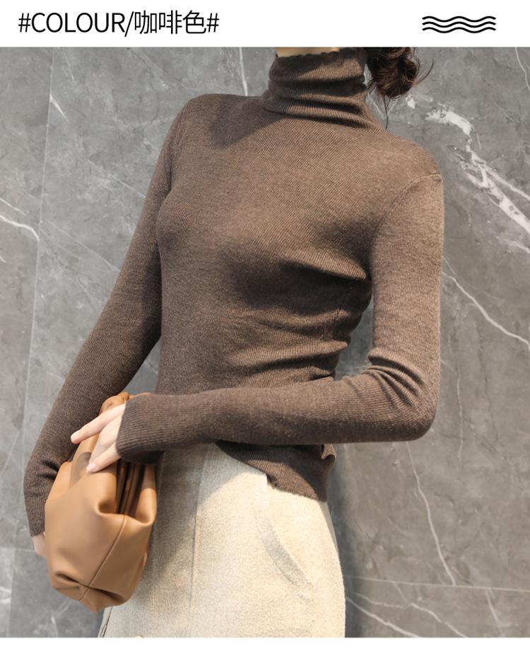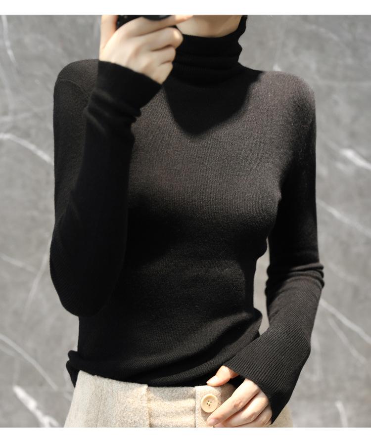 Suéter Feminino de Gola Alta Ajustado em Mistura de Lã para Outono e Inverno