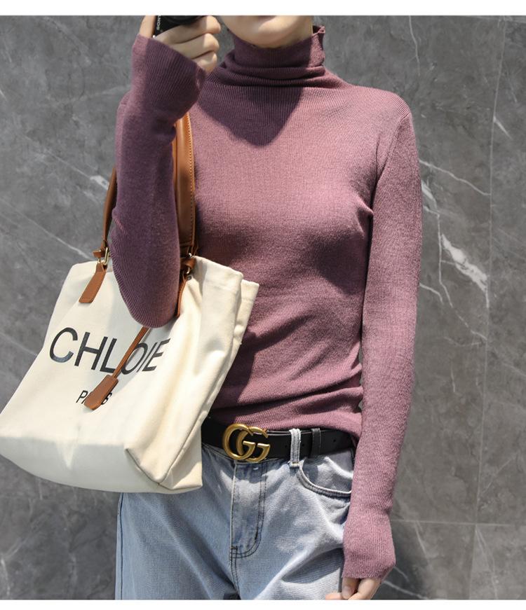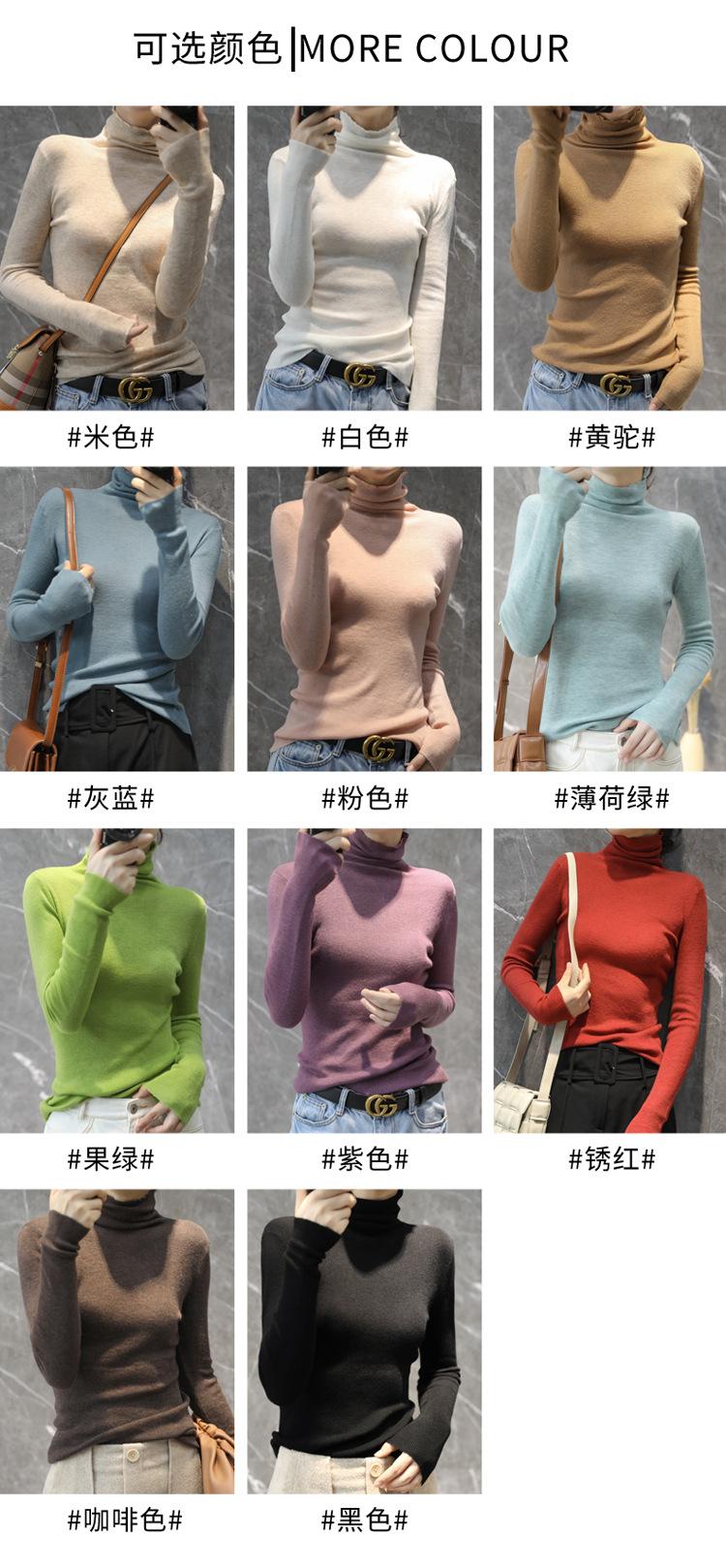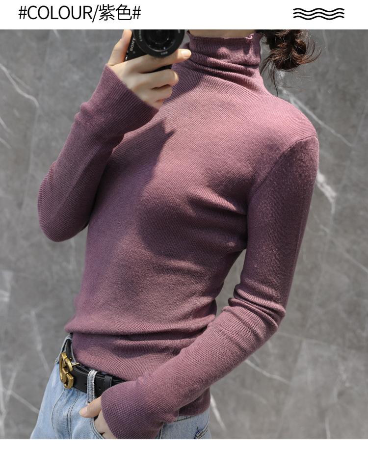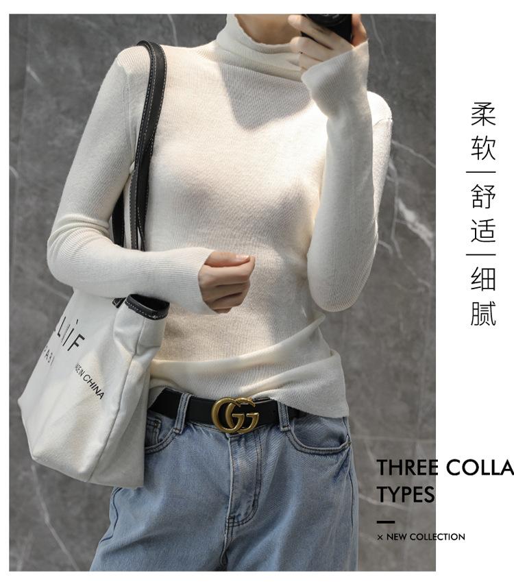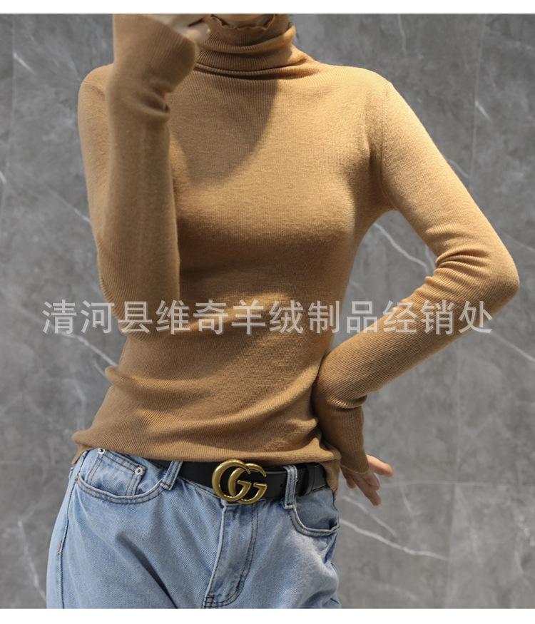 Suéter Feminino de Gola Alta Ajustado em Mistura de Lã para Outono e Inverno