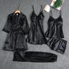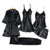 Pijama Conjunto de Cinco Peças Primavera & Outono Feminino Verão Sexy Seda Gelo Camisola Suspender com Bojos Feminino Pode Usar Camisola Roupa de Casa
