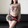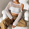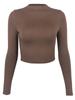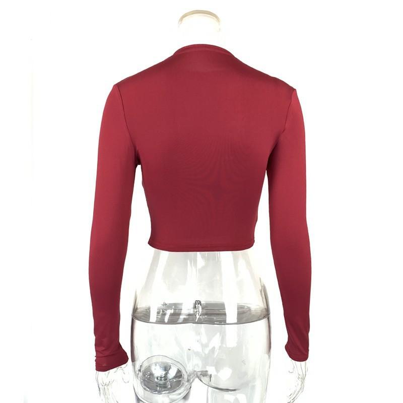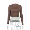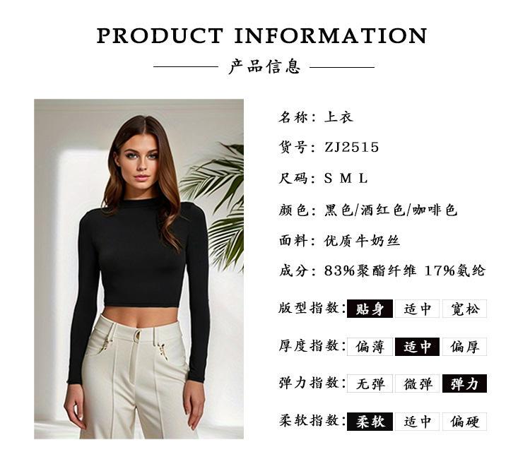 Inverno 2025 Europeu e Americano Transfronteiriço Novo Moda Sexy Feminina Ajuste Slim Umbigo Gola Média Alta Manga Curta Longa Top