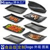 Prato de churrasco criativo comercial de imitação de porcelana preta de melamina japonesa para sushi prato retangular de plástico para panela quente prato de corda