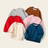 Blusa infantil de algodão puro com forro de lã para meninas, primavera e outono de 2023, nova blusa infantil grande de cor sólida para homens, roupas brancas de outono para crianças