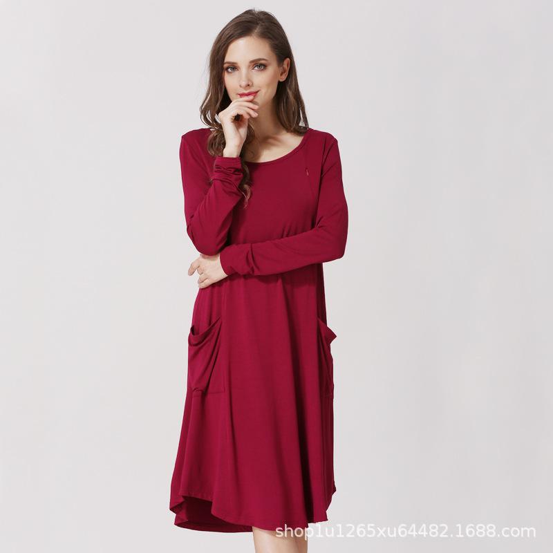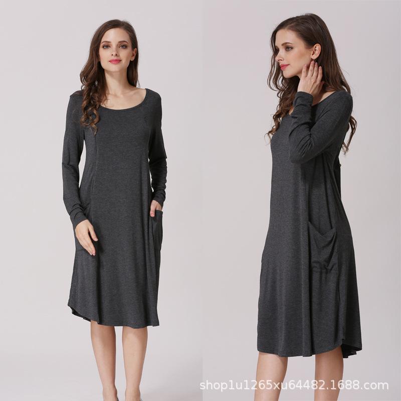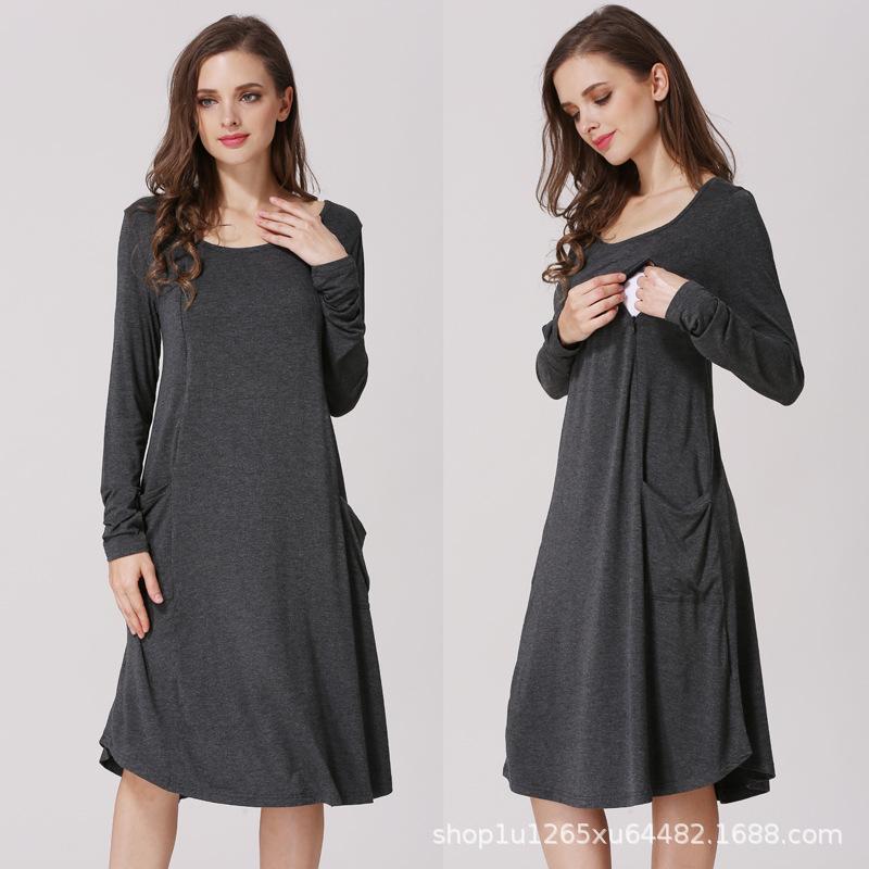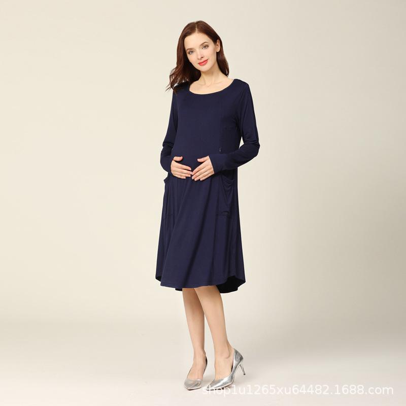 Europa, América e Canadá, tamanho grande, vestido para gestantes, primavera e outono, casual, solto, confortável, vestido para gestantes, lactação, manga comprida, vestido para gestantes
