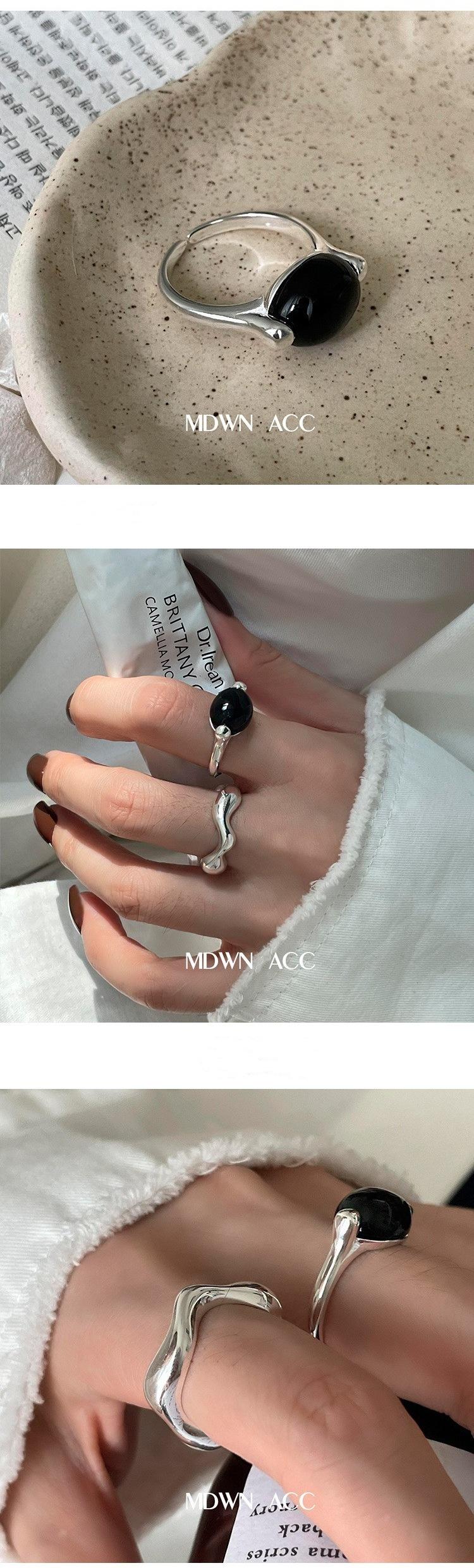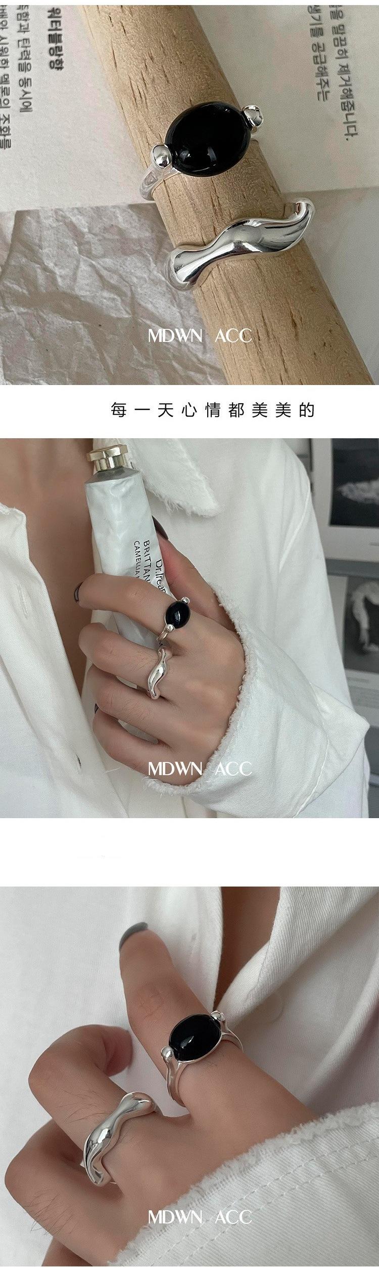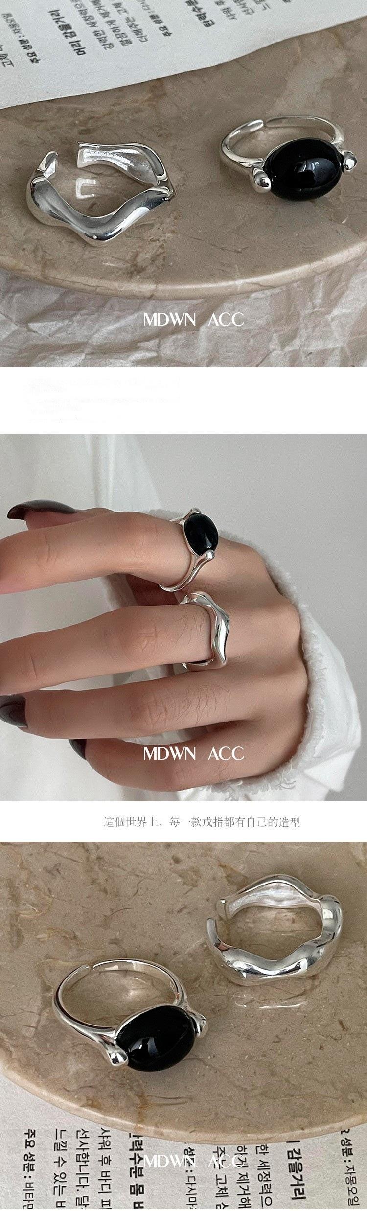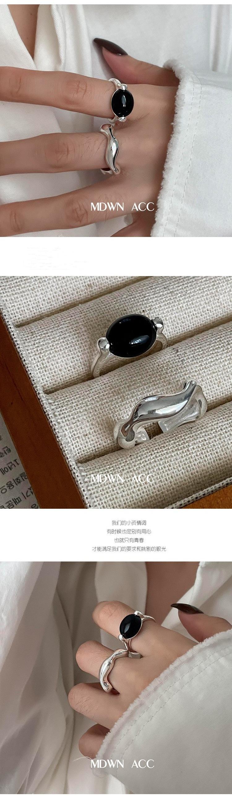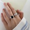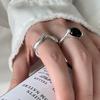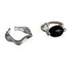 Anel oval de zircônia preta feminino geométrico onda linha irregular s925 prata anel aberto anel de dedo personalizado