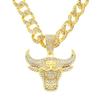 Pingente de cabeça de vaca tridimensional incrustado de diamantes, estilo hip-hop europeu e americano, corrente cubana, grande corrente de ouro, colar moderno e descolado do punk