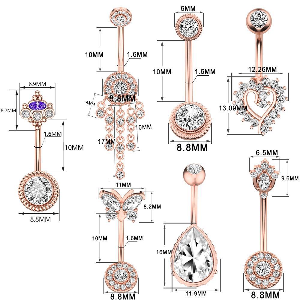 Cross-border novo zircão em forma de coração umbigo anel umbigo unha corpo humano piercing joias on-line atacado
