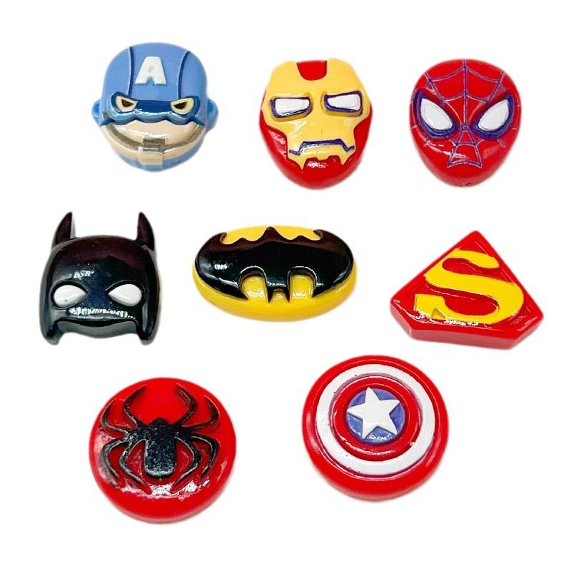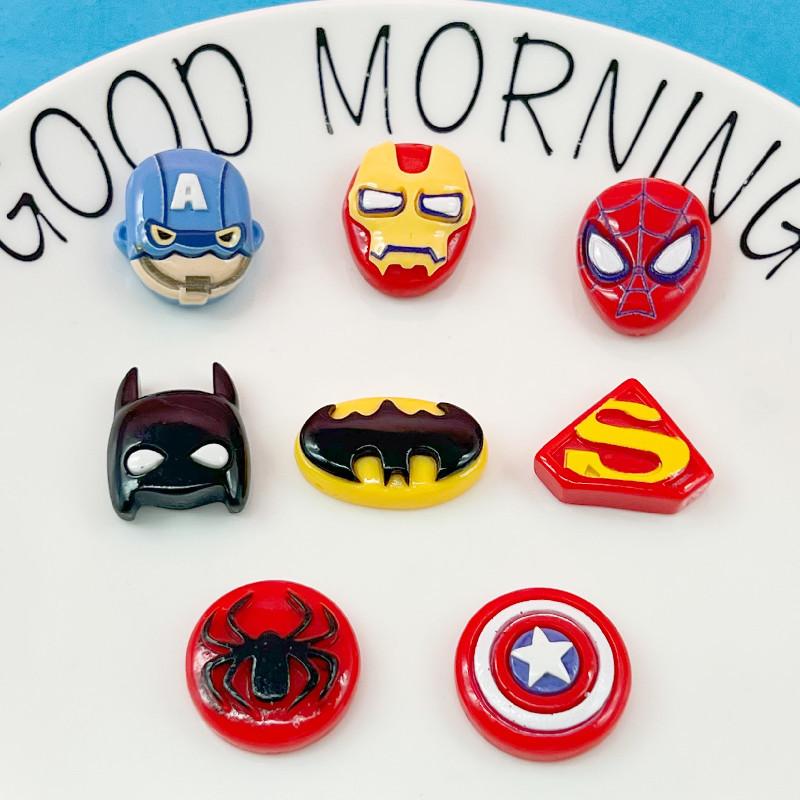 Cartoon brilhante Capitão América Superman Spider-Man Shield aliança Marvel herói geladeira ímã acessórios de cabelo acessórios de resina