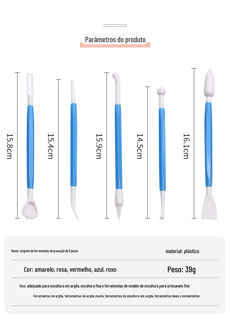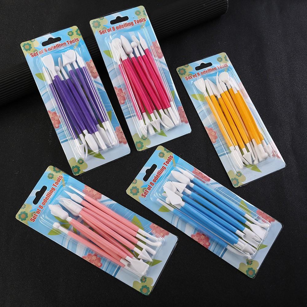 Argila Transfronteiriça Argila de Cerâmica Macia Ferramentas de Cerâmica de Argila Plástico Bolo Assar Relevo Conjunto de 8 Peças Ferramentas de Escultura em Argila Saco Opp