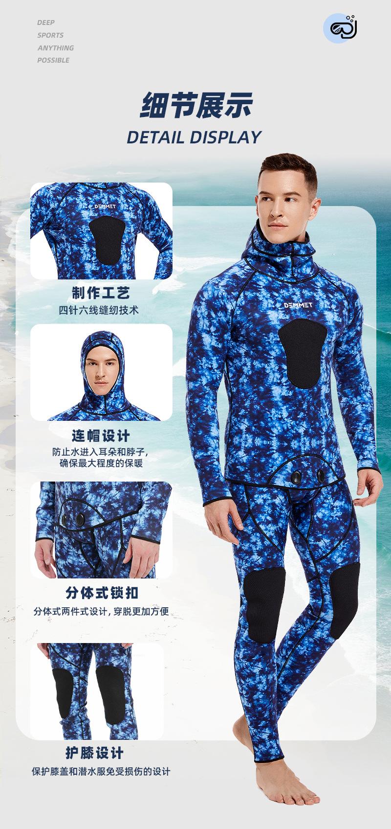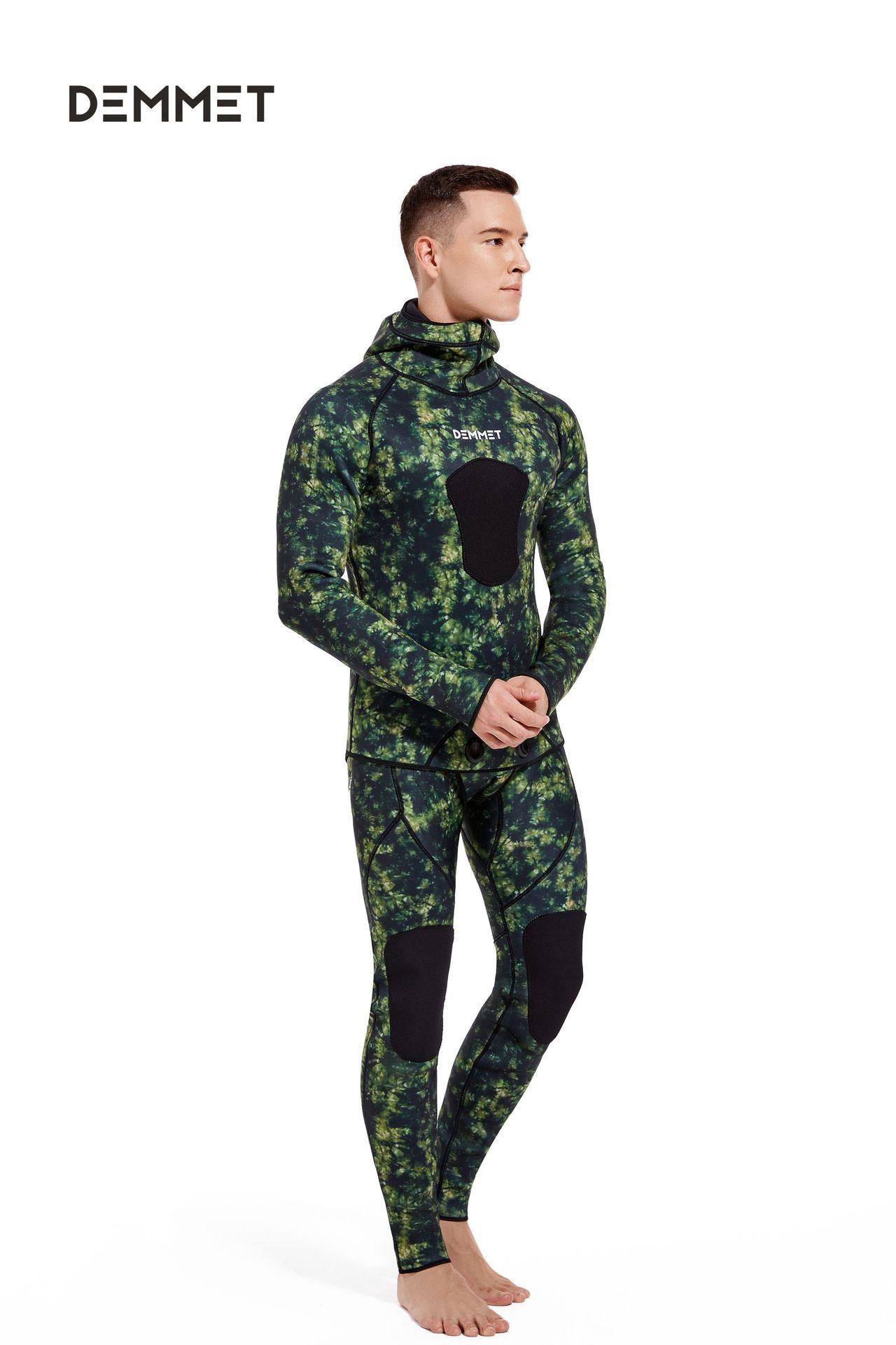 Compre Traje de caça de peixes camuflado, roupa de mergulho de neoprene masculina de duas peças de 3 mm, quente e à prova de frio, para mergulho com snorkel, surfe e natação no atacado no Joom.pro