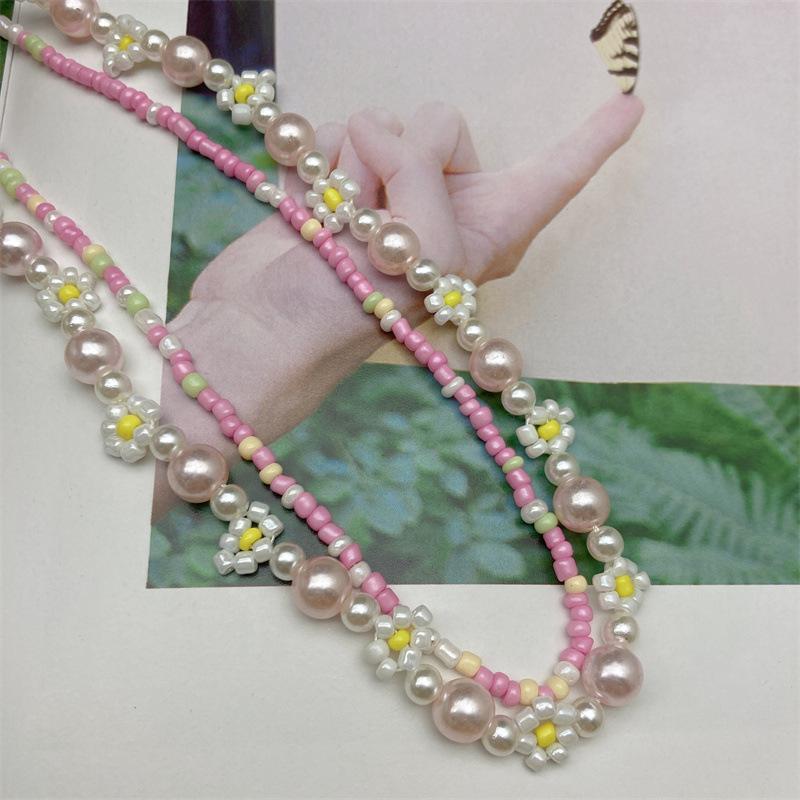 Colar бижутерия contas de vidro acessórios frisados cross-border atacado imitação de colar de pérolas