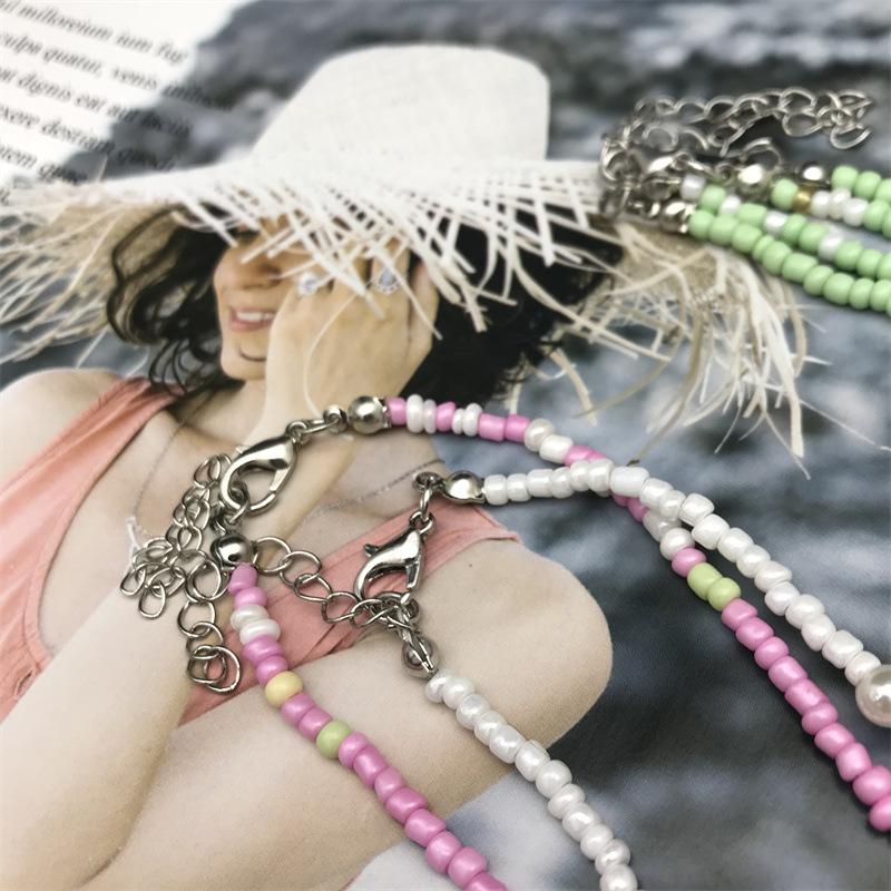 Pulseira linha elástica imitação de pérola artesanal, acessórios de mão versáteis, fornecimento transfronteiriço, local de joias ins