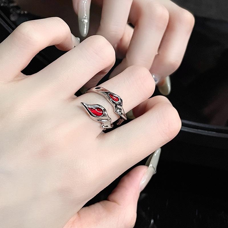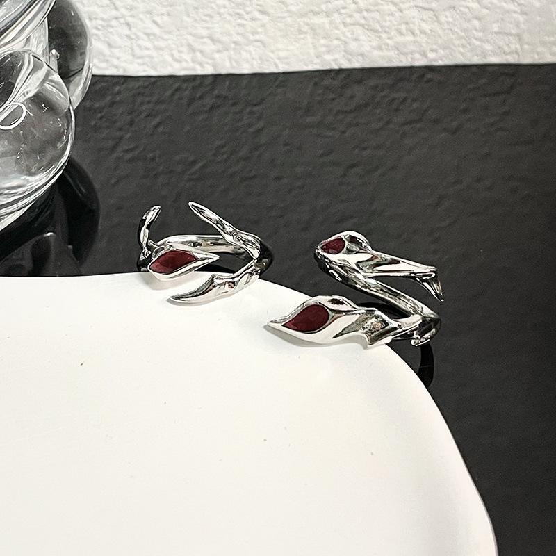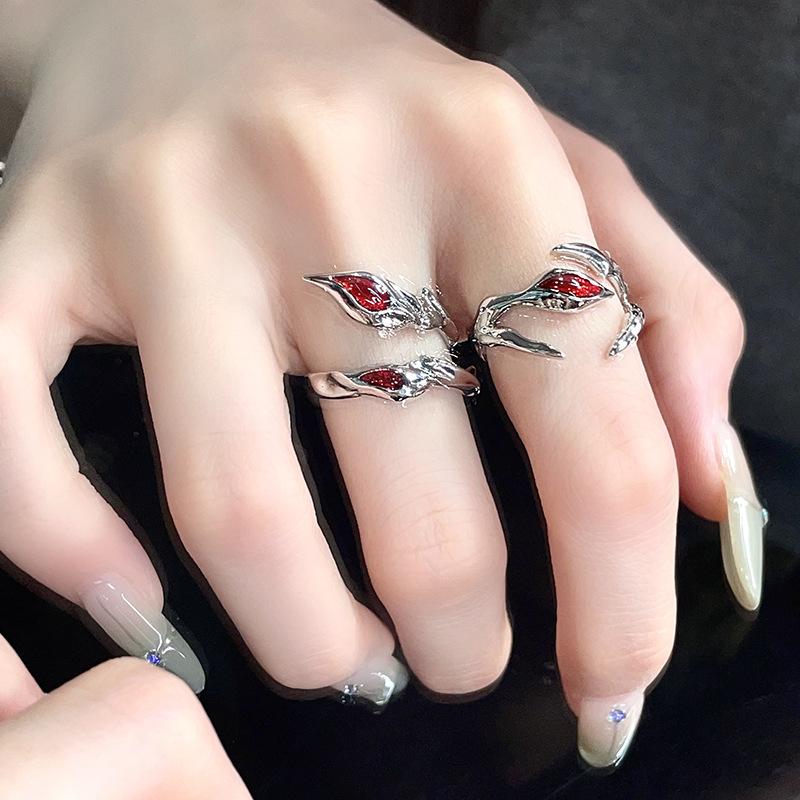 Design original nicho ins estilo frio vermelho de alta qualidade esmalte casal aberto anel personalizado retro dedo anel