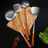 Atacado espátula de cabo longo de carvalho cozinha doméstica 304 aço inoxidável colher de sopa escorredor pá de fritura conjunto de utensílios de cozinha