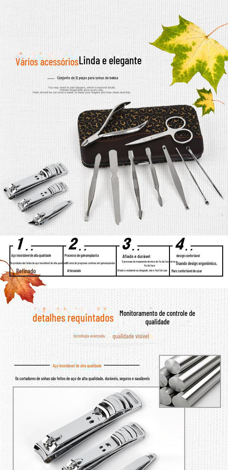Cortadores de unhas de aço inoxidável, cortadores de unhas, ferramentas de unha, cortadores de unhas, pedicure profissional, conjunto de facas de 12 peças