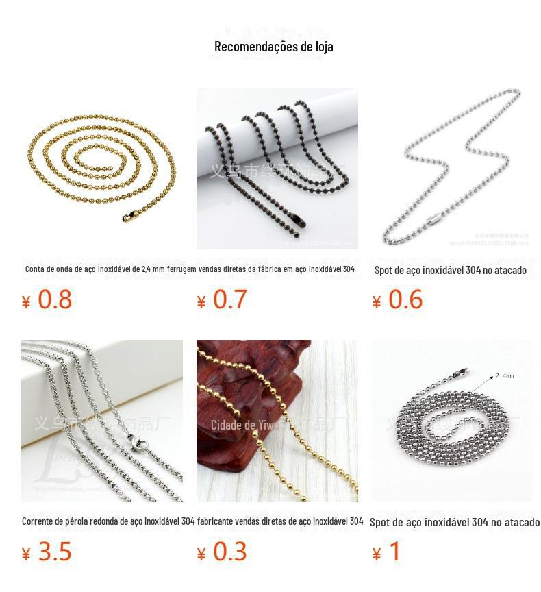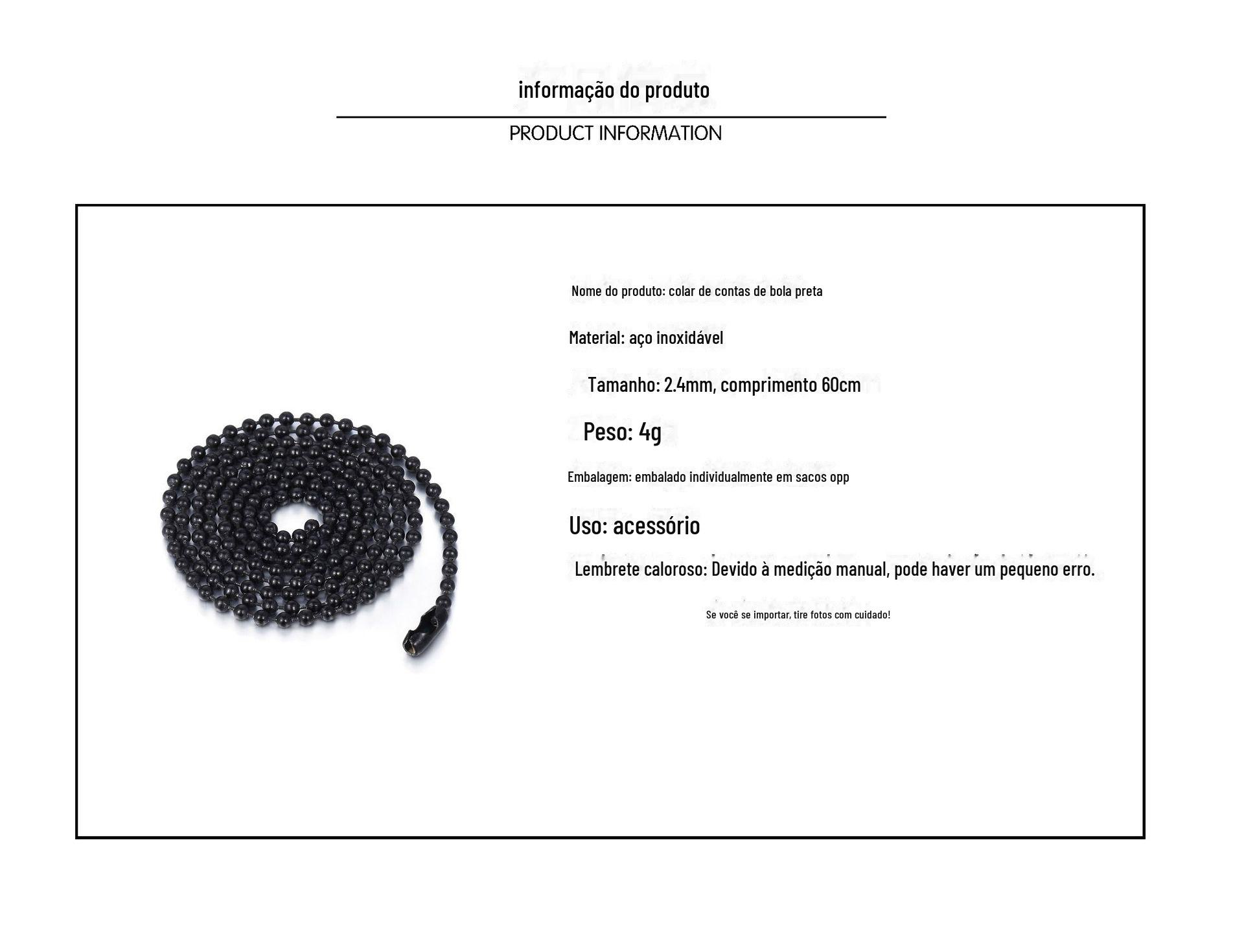 304 aço inoxidável esfera de contas corrente de bola preta corrente de arroz cordão de corrente pingente joias Coringa cadeia spot atacado