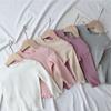 Camiseta Básica de Ropa para Niños y Niñas de Primavera y Otoño Top Interior de Color Sólido Estilo Occidental para Bebés Estilo Coreano Distintivo de Moda Borde de Oreja de Madera