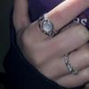 Anel de Pedra da Lua de Duas Peças Anel Aberto de Diamante Feminino Design de Nicho Anel de Peça Anel de Dedo Anel Francês de Autodisciplina