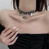 Colar Punk Cruz Strass Metal Pérola Textura Clavícula Contas Choker Masculino Exquisito Feminino