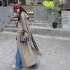 Fornecimento direto de fábrica outono cor sólida versão coreana com temperamento cinto commuter longo preto trench coat casaco mulheres